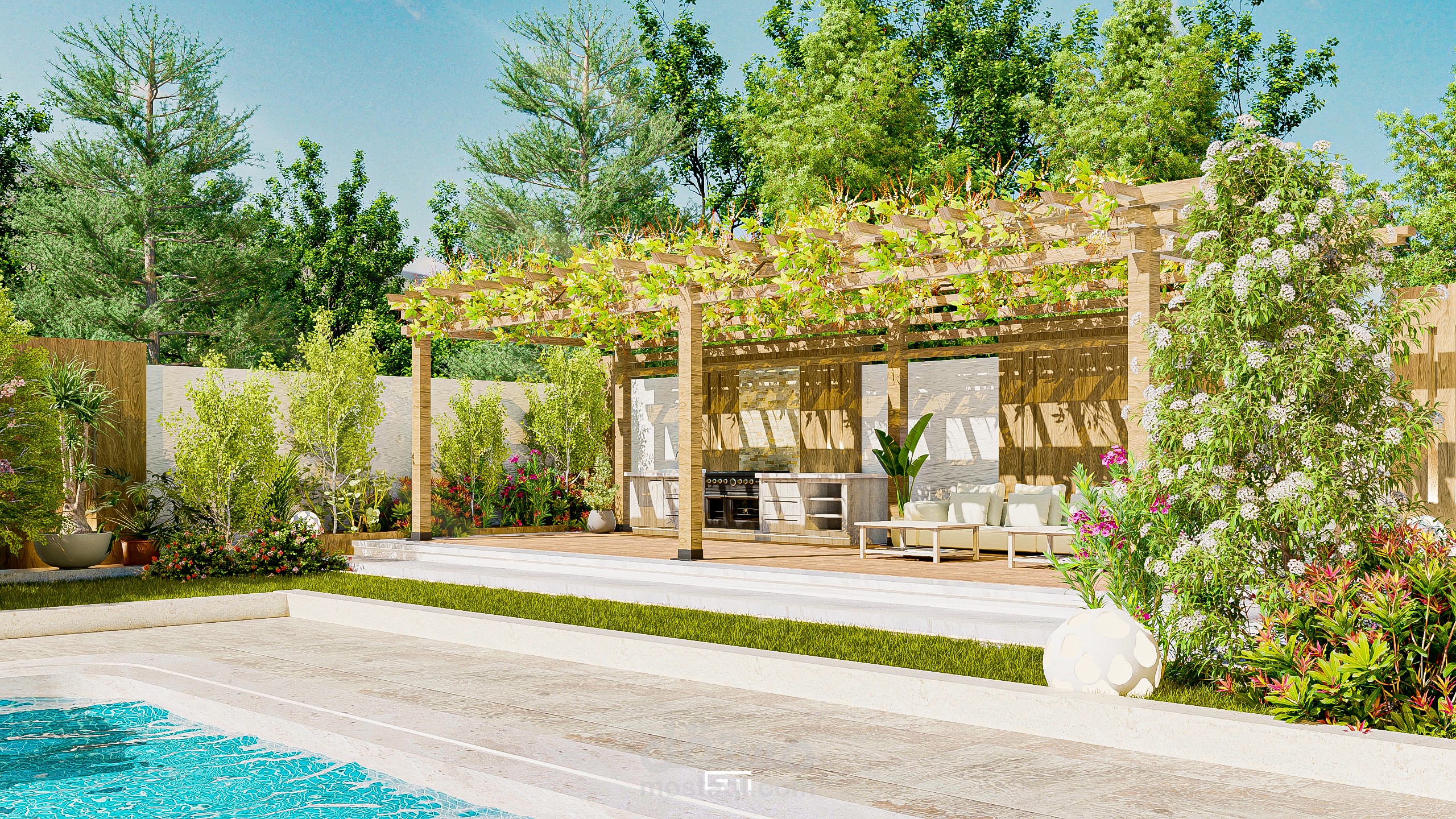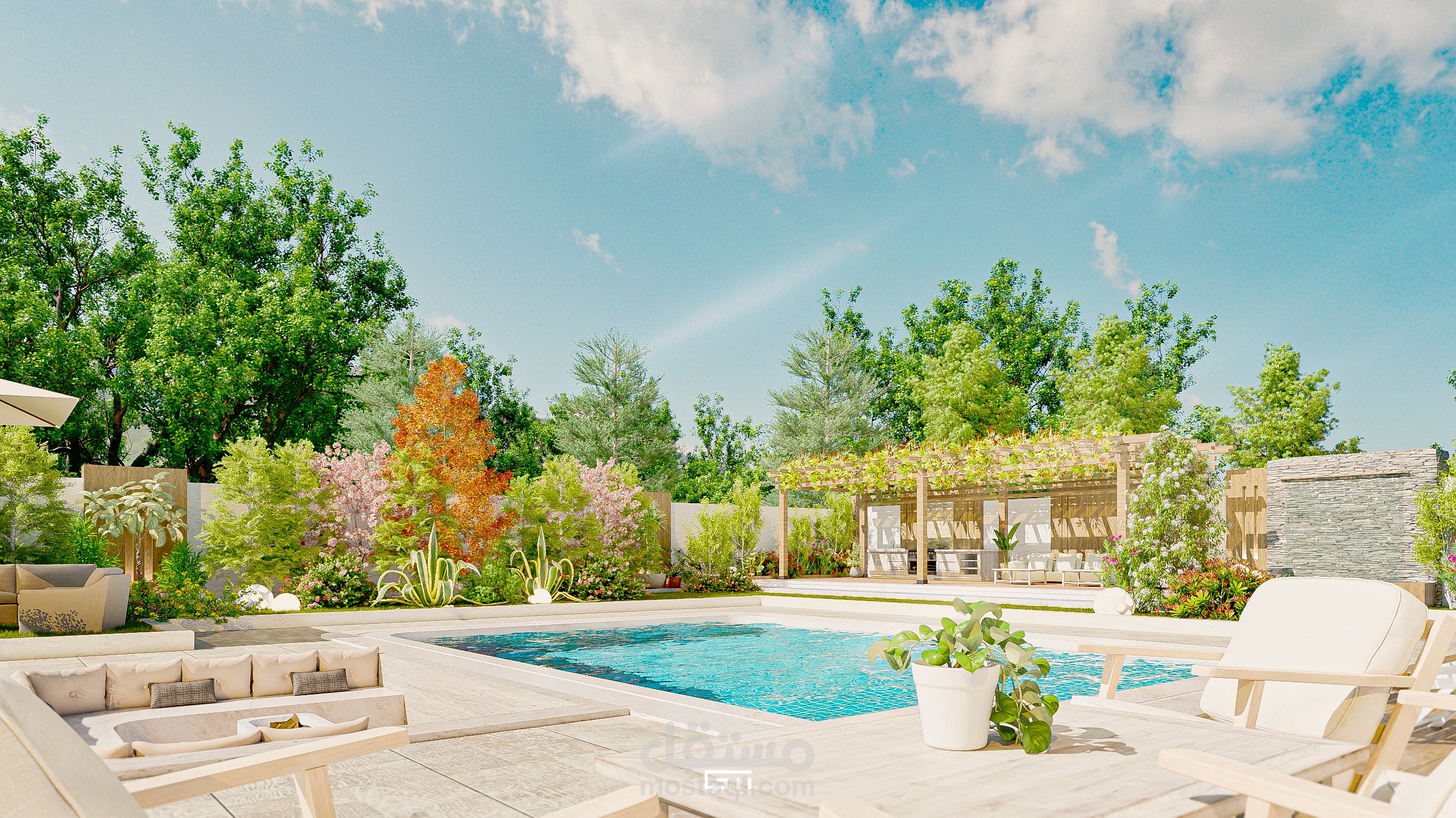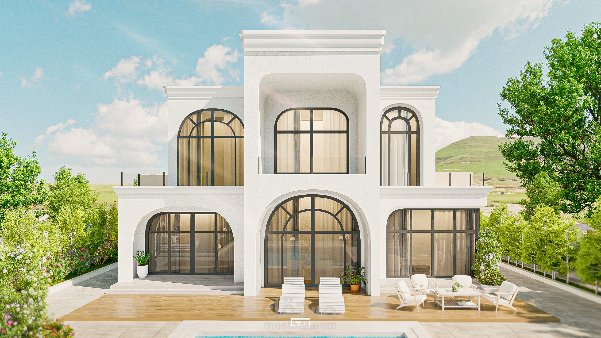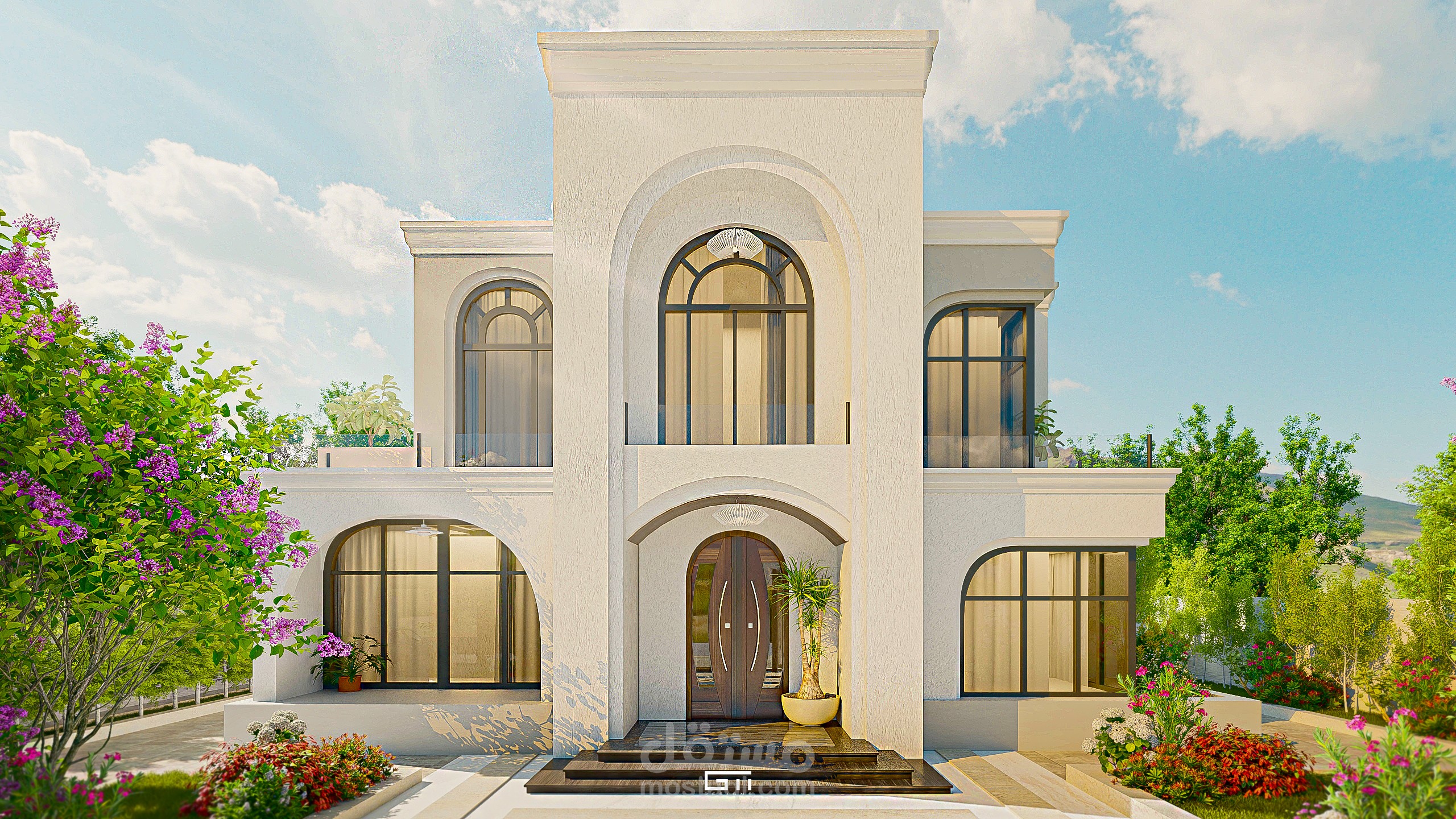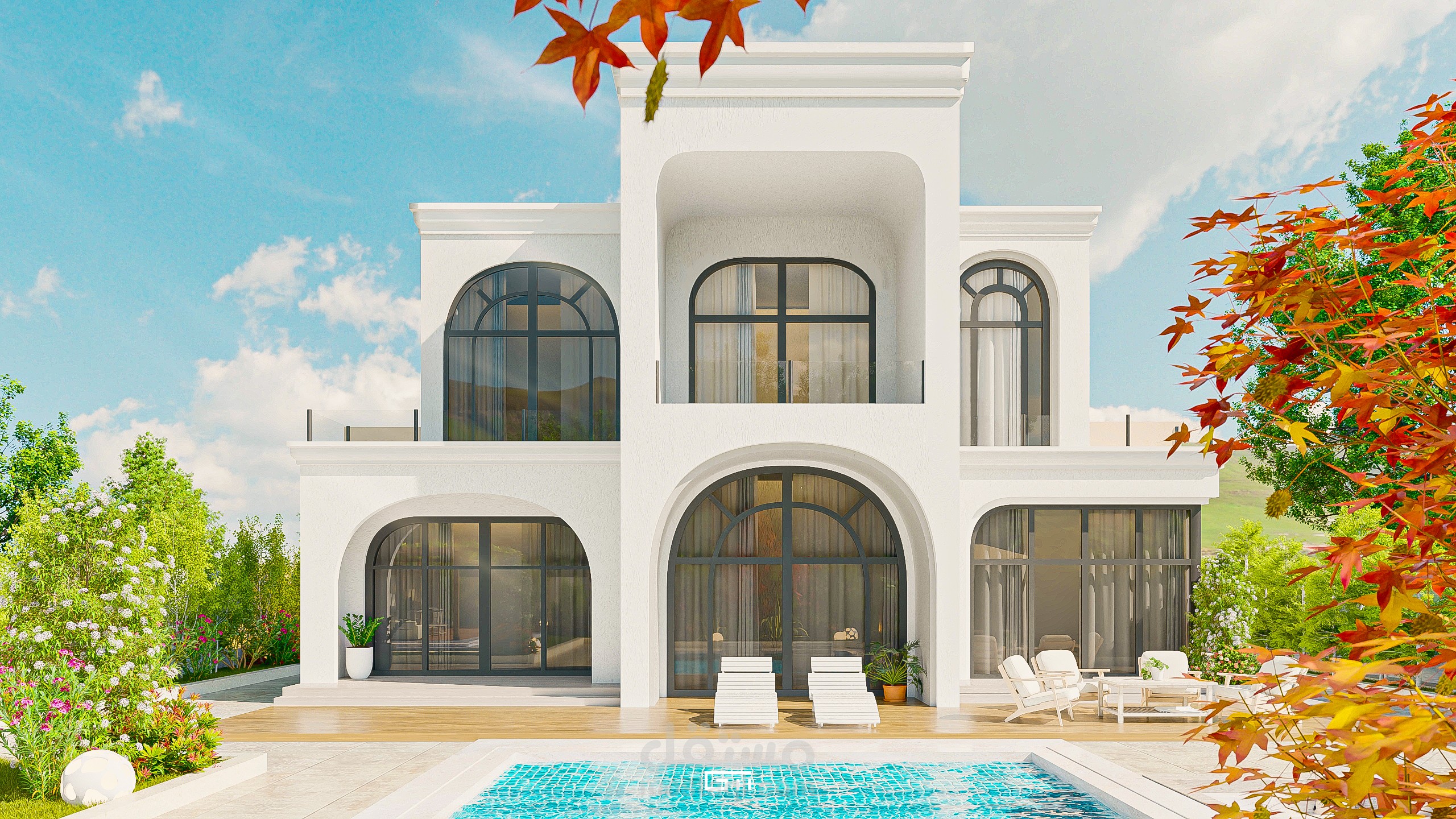 SCOPE OF WORK : Designing Residential villa with modern touches contains main building , Pool , Gazebo and car parking the design also mainly focus on designing the landscape and making it more homogeneous with the design .