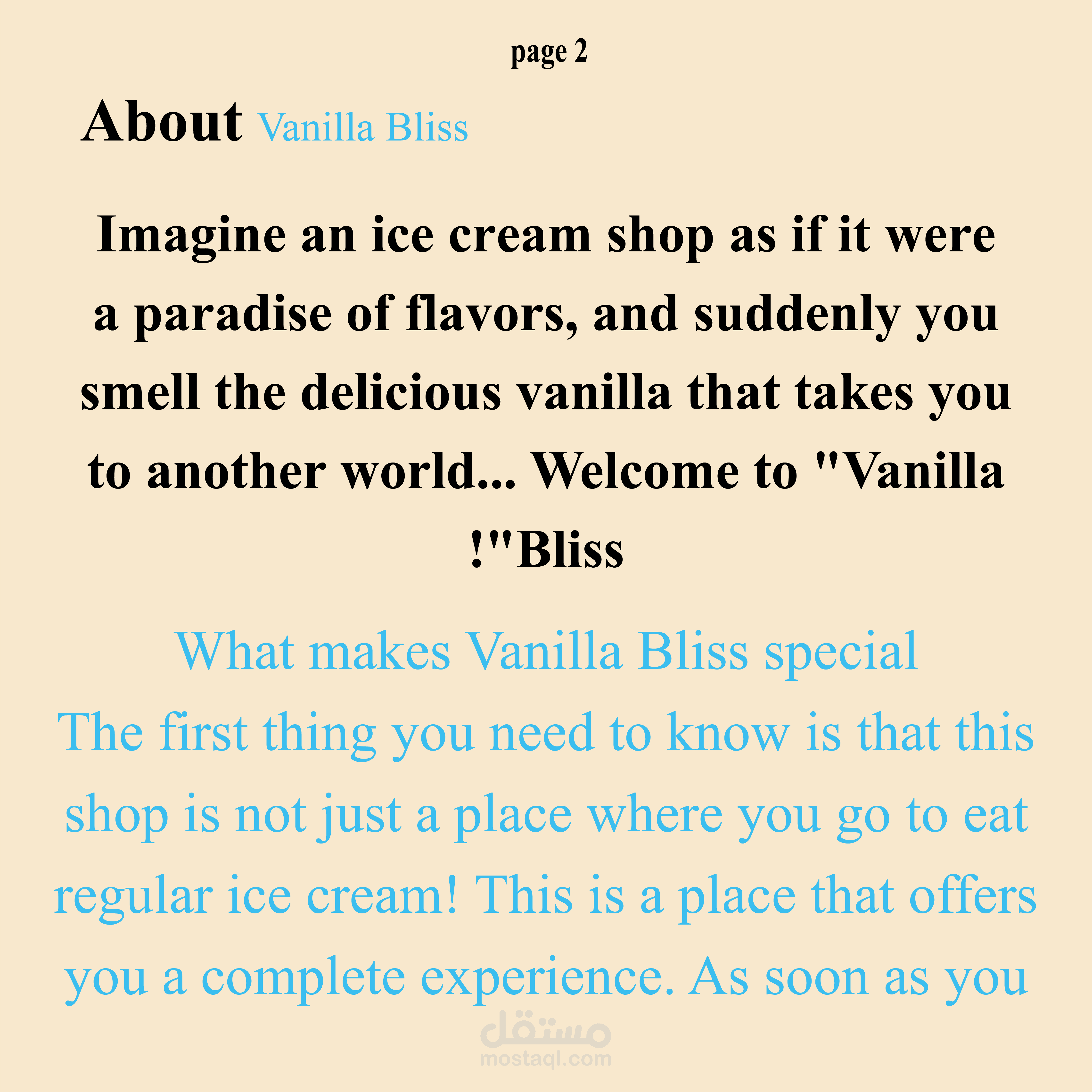 أول ما تدخل "فانيلبا بليس"، تحس وكأنك دخلت عالم خيالي من الفانيليا والألوان. الأبواب تكون زجاجية شفافة، عليها رسومات مرحة لآيس كريم بأشكال مبتسمة، تحس إنك داخل كارتون! بمجرد ما تفتح الباب، يجيك نسيم بارد منعش محمل برائحة الفانيليا المسكرة اللي تغزو أنفك وتخليك تتحمس على طول تجرب كل النكهات.