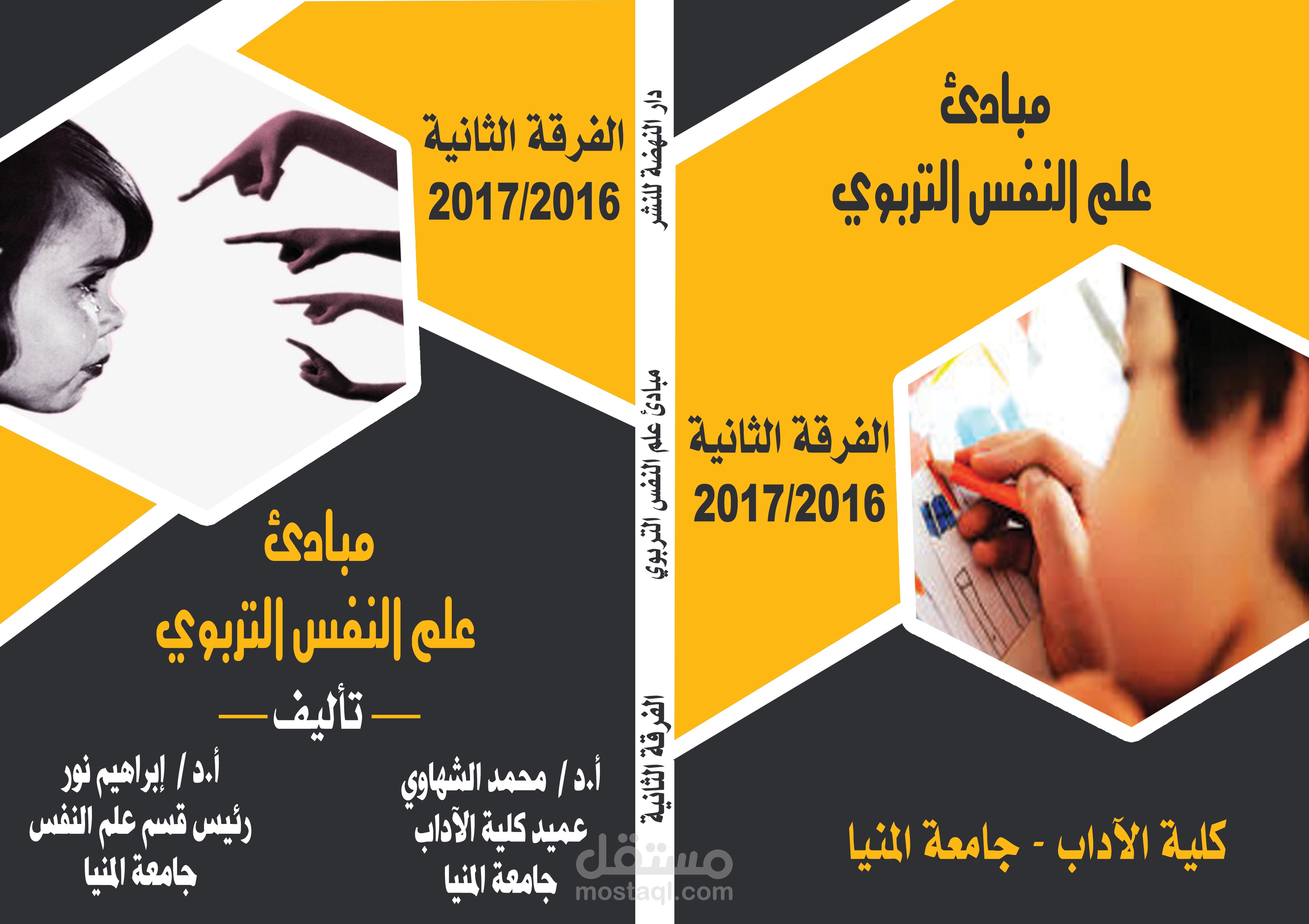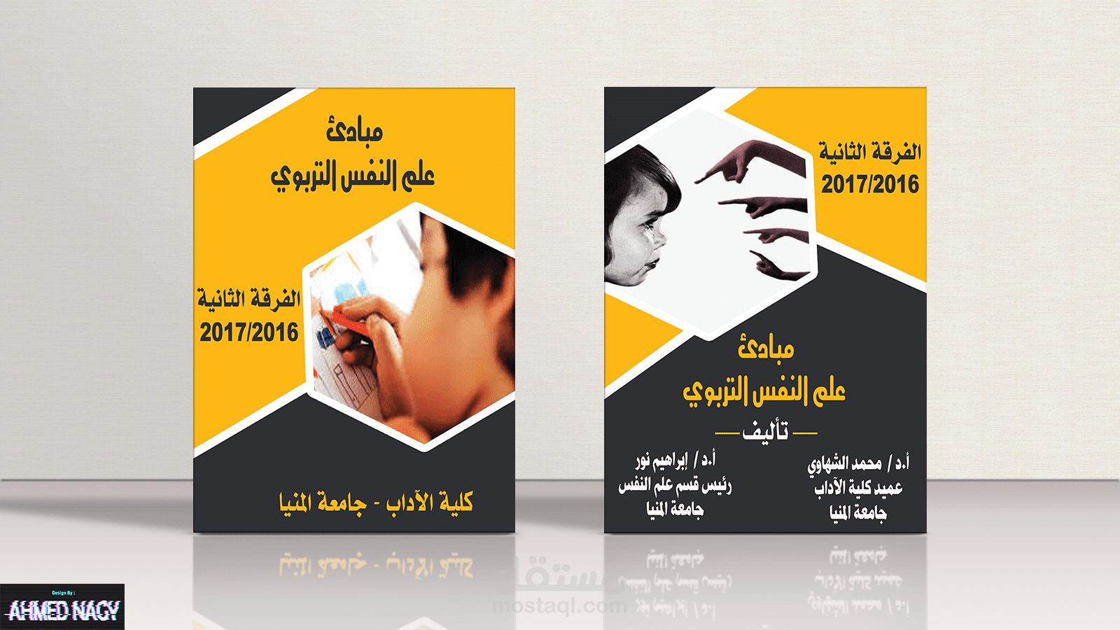 - في هذا العمل تم تصميم غلال كتاب مقاس 34*24 cm خاص بمادة علم النفس التربوي .. وتم اخذ إذن دكتور المادة صاحب التصميم لعرض العمل بين معرض اعمالي.
