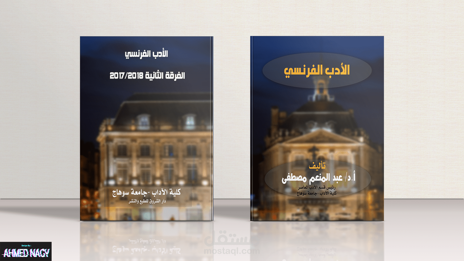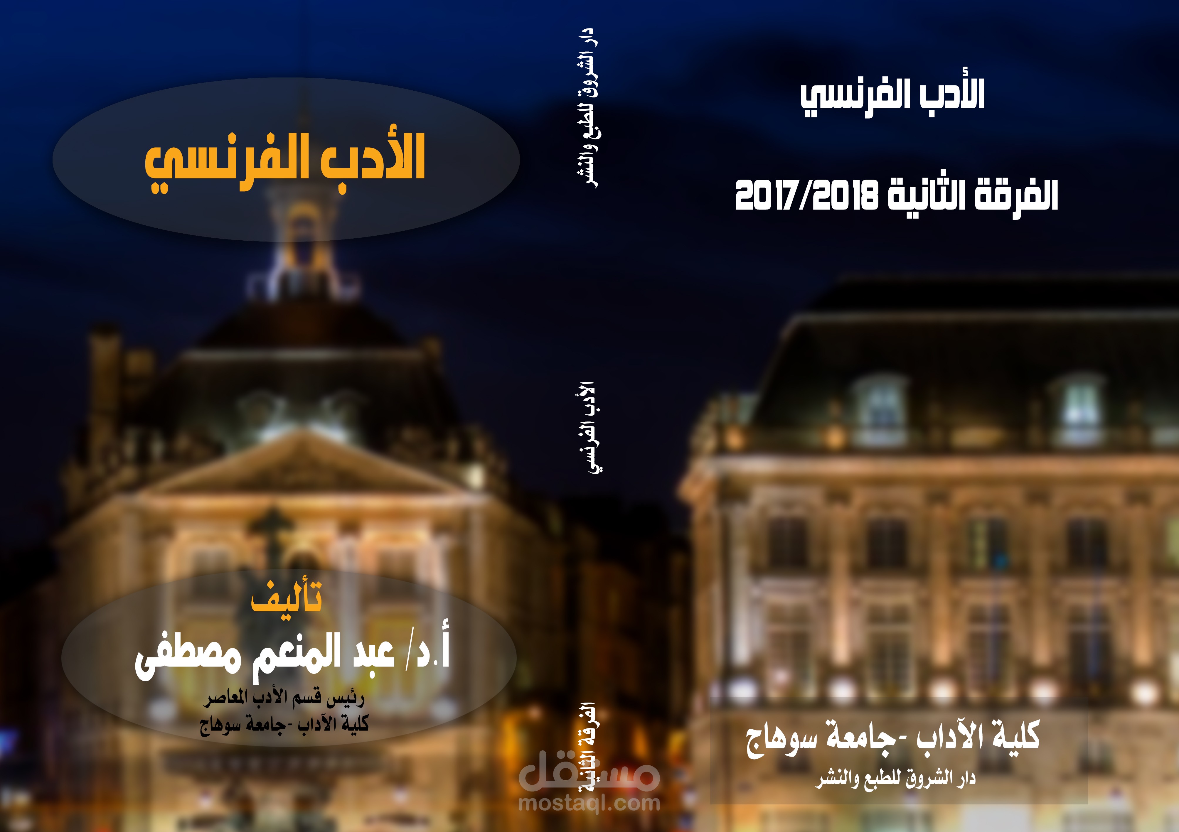 - في هذا العمل تم تصميم غلاف كتاب لأحد المواد الدراسية ( الادب الفرنسي ) .. بمقاس 34*24 CM .. وتم اخذ إذن دكتور المادة صاحب العمل في عرض العمل في معرض اعمالي.