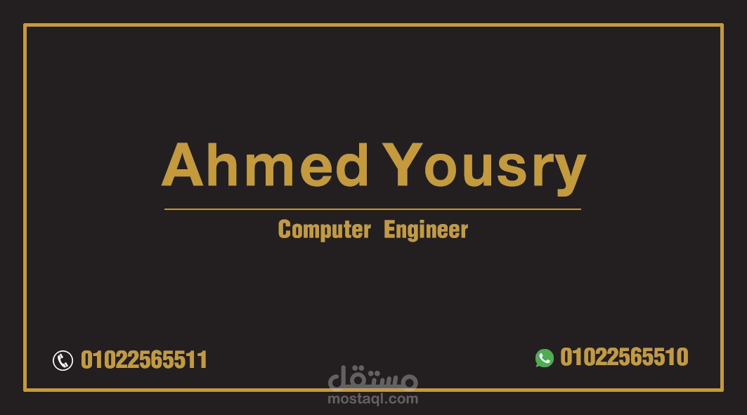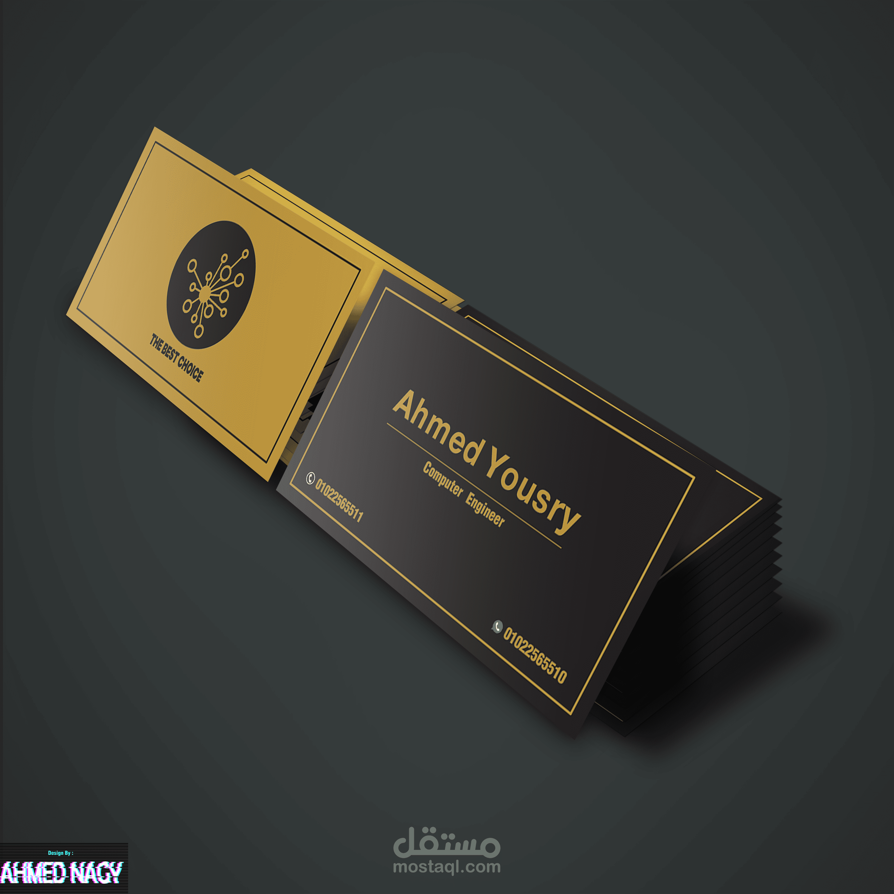 - هذا العمل تصميم كارت شخصي .. مقاس 9*5 cm.. لأحد العملاء وهو مهندس كمبيوتر .. وتم اخذ اذنه بوضع العمل في معرض اعمالي.