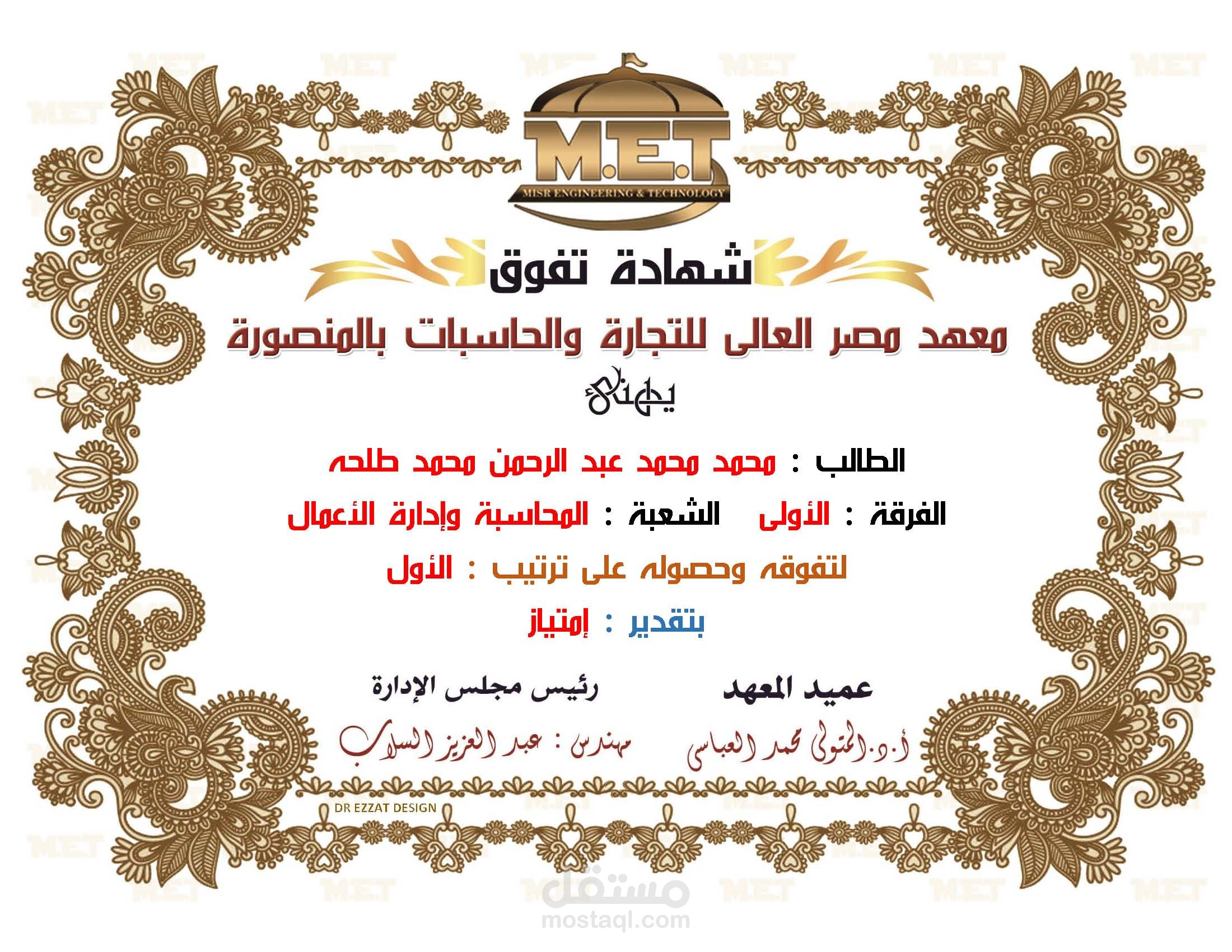تصميم شهادات التكريم لأكاديمية مصر على مدى 5 سنوات
