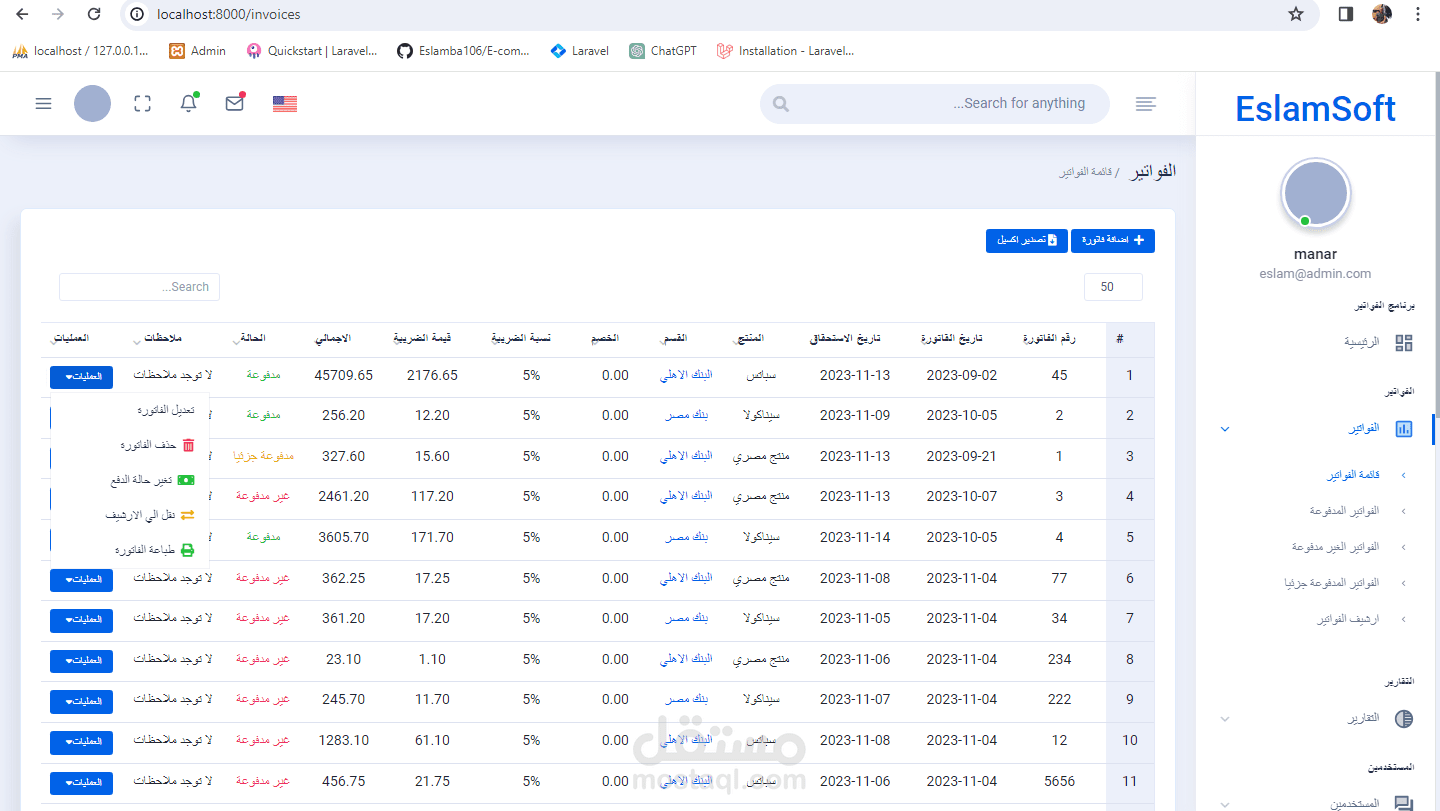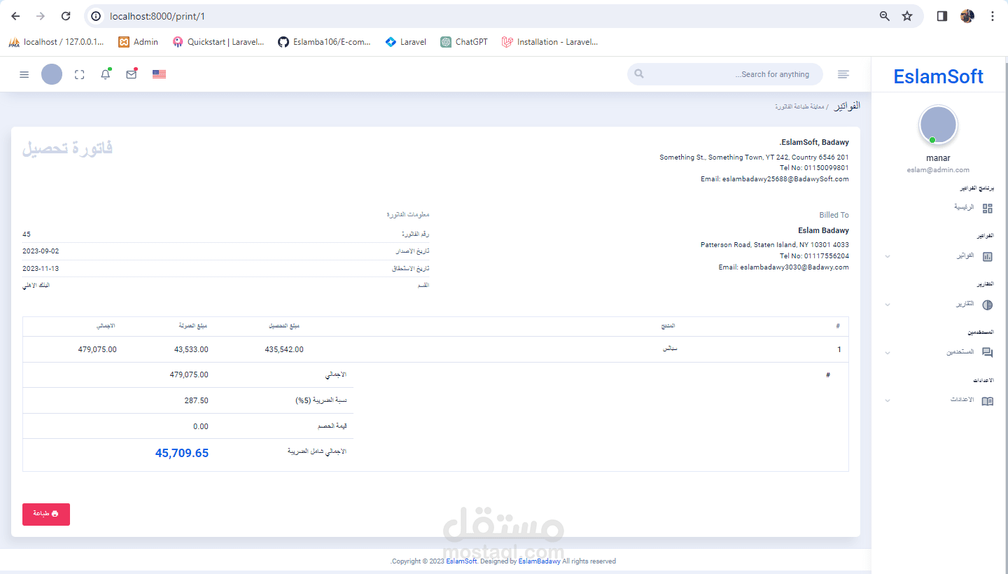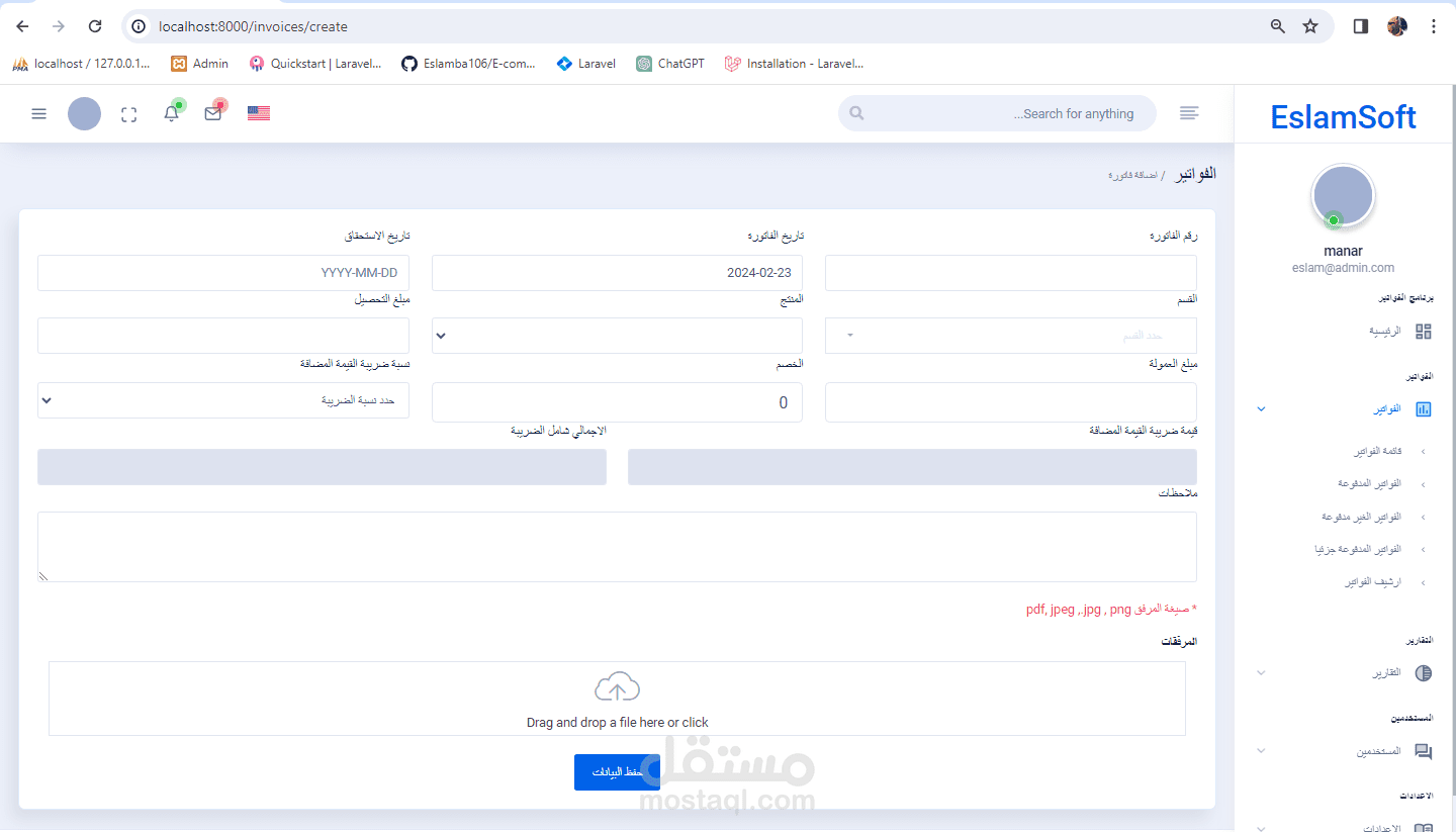مشىروع انشاء فواتير الكترونية للمتاجر والمبيعات
