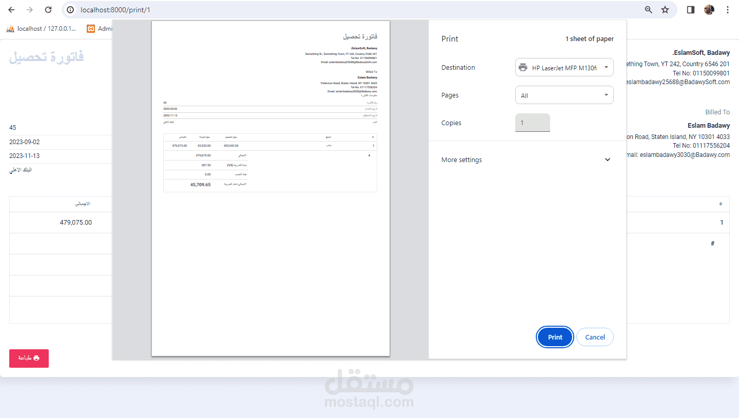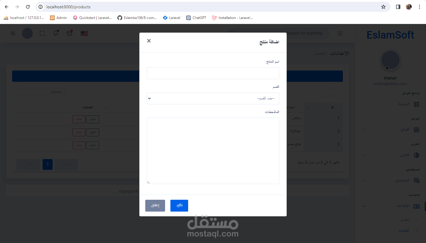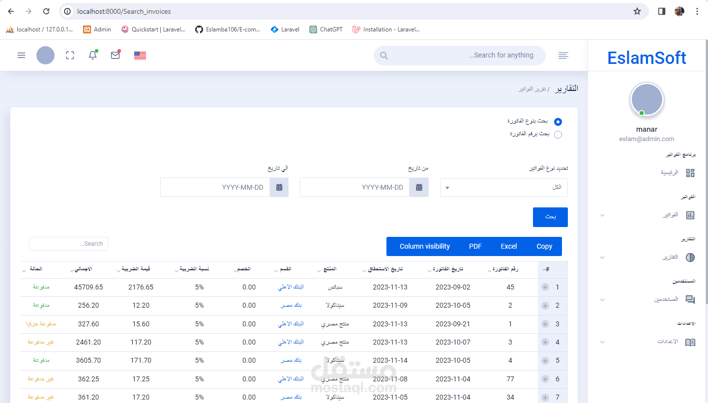 مشىروع انشاء فواتير الكترونية للمتاجر والمبيعات