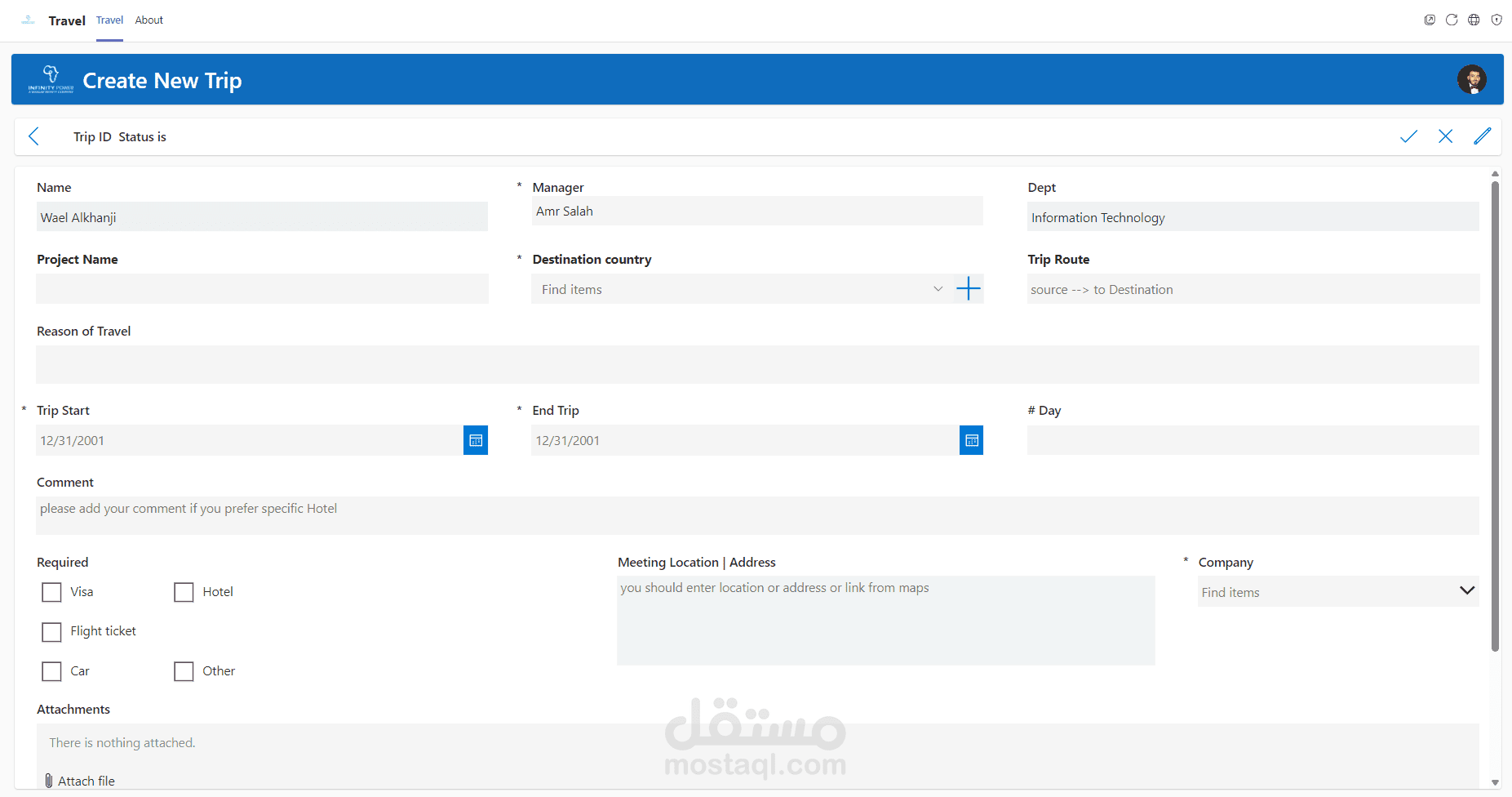 أنا أؤمن بأهمية التحول الرقمي وأتمتة العمليات والعمليات اليومية. أنا متحمس لمشاركة مشروعي الجديد لـ Infinity Power، تطبيق Infinity Travel Request. باستخدام هذا التطبيق، يمكن لفريق الإدارة رؤية جميع طلبات السفر الجارية والمعلومات المرتبطة بها في أداة واحدة سهلة الاستخدام. سيساعدك هذا على تتبع جميع تكاليف السفر بشكل أكثر كفاءة ودقة.
