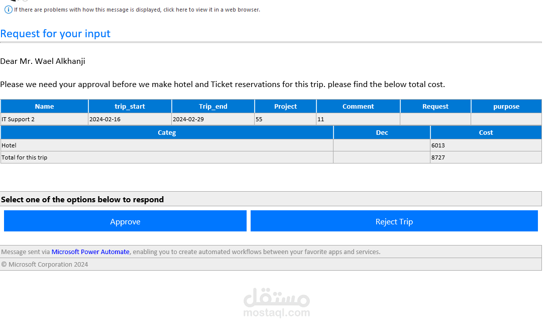 تكوين وتصميم سير العمل لدورة الموافقة على تكلفة السفر.