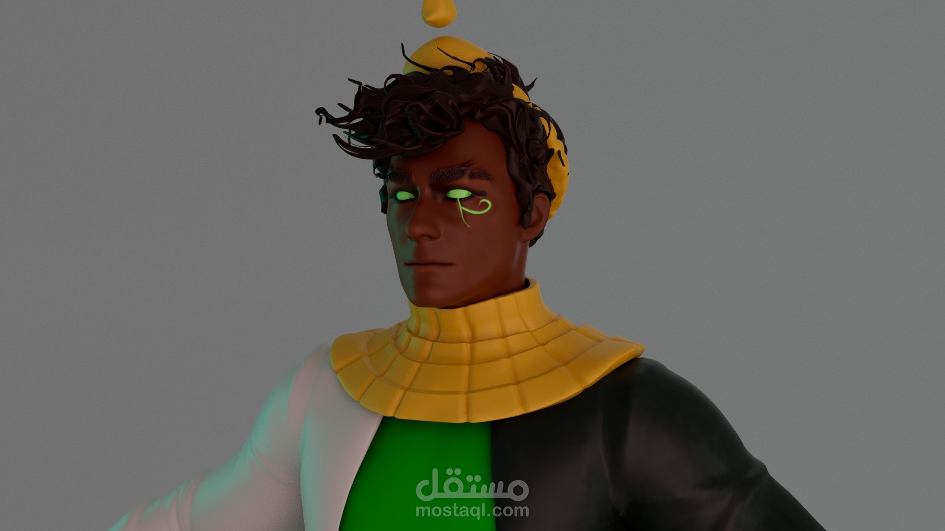 This is my master's project, I made a 3d character for the ancient Egyptian deity Geb, First, I collected information about this deity, and then I made a character design sheet using Photoshop, I drew Geb from different perspectives to make it easy for the next step which was the 3d modelling in Zbrush. Geb was the god of earth and fertility in ancient Egypt, he was always portrayed as a man with dark black or green skin to resemble the earth's fertile soil, and he had a goose on the top of his head. I made him wear sandals to show his connection with the grass and soil as he could feel them on his feet, also I made him wear a suit to give a contemporary feeling to this character.