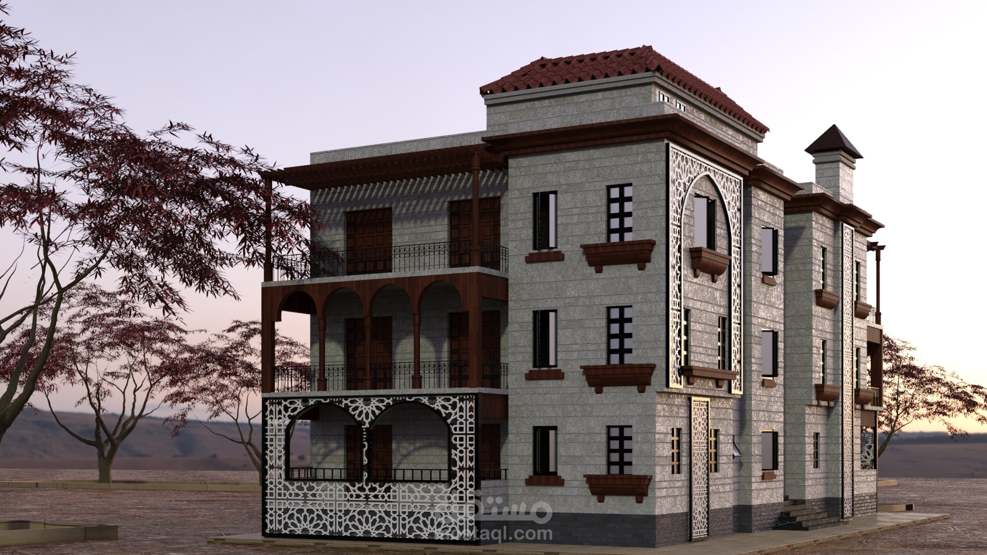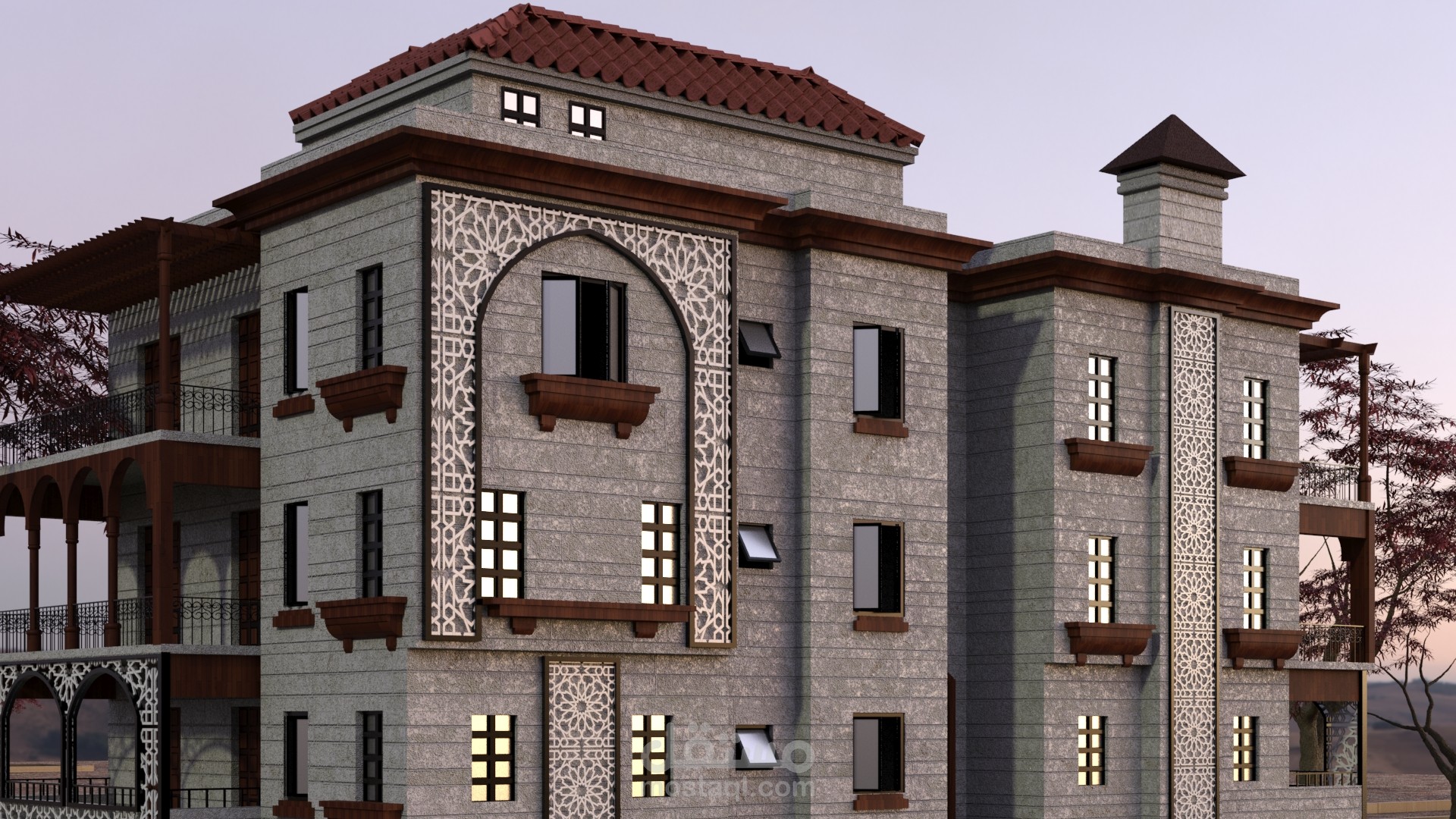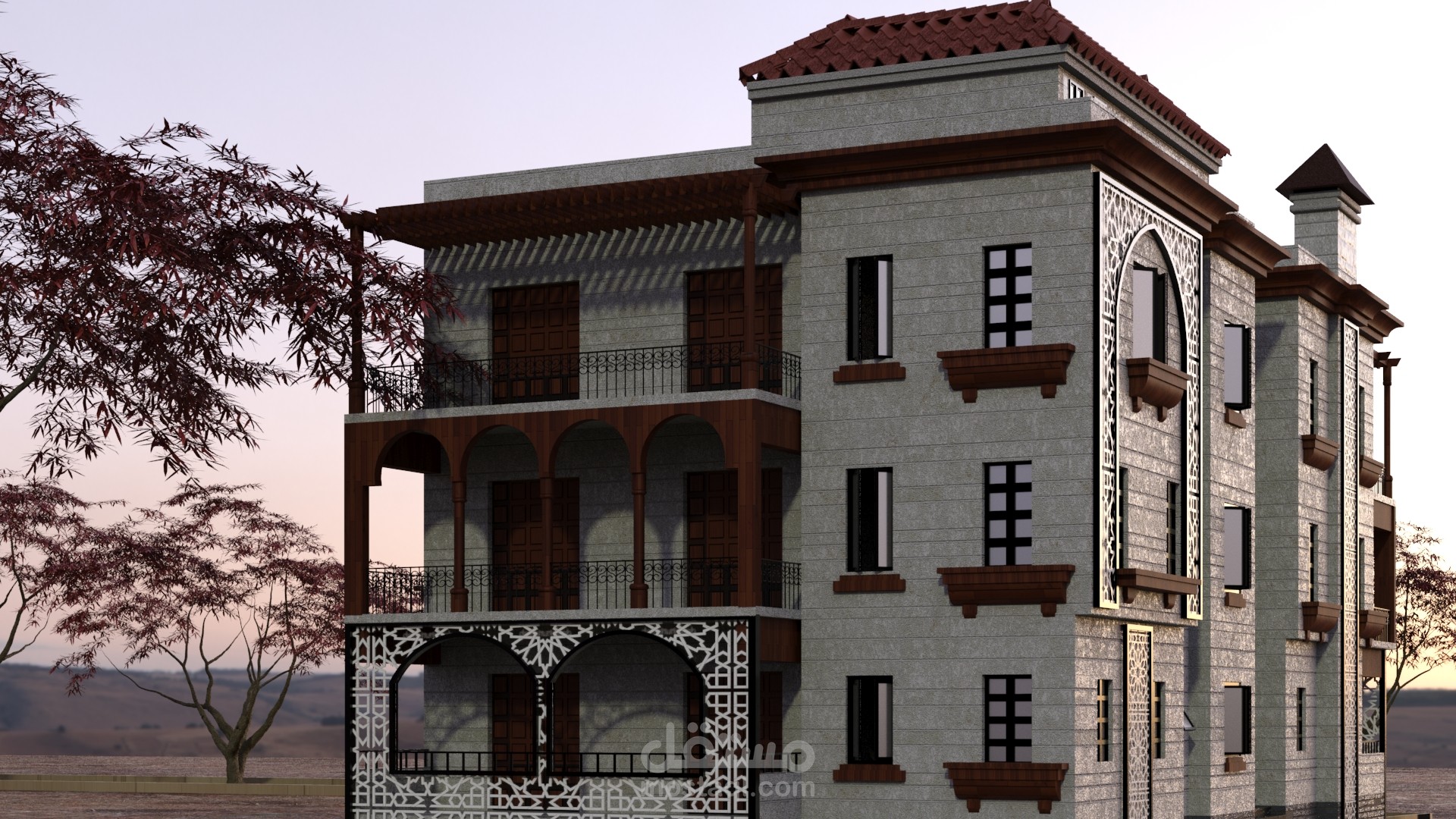 Exterior Islamic villa design ( 3D Max ), Everything was modelled except for the trees.