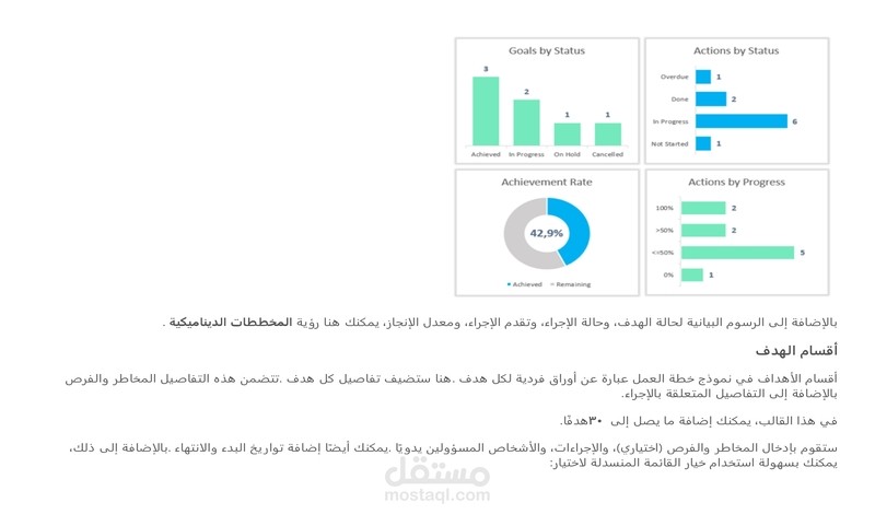 بالإضافة إلى الرسوم البيانية لحالة الهدف، وحالة الإجراء، وتقدم الإجراء، ومعدل الإنجاز، يمكنك هنا رؤية المخططات الديناميكية .