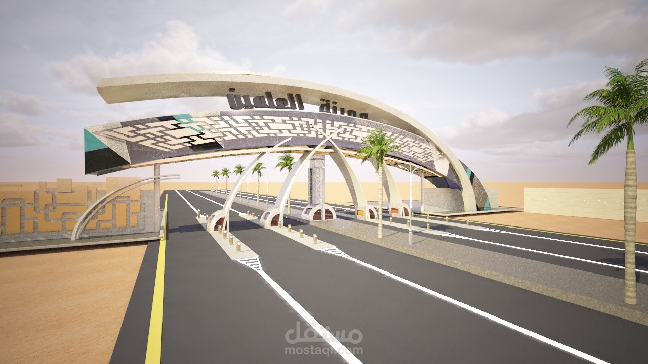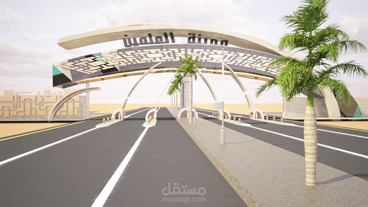 تصميم لبوابة مدينة العلمين علي الطراز الاسلامي