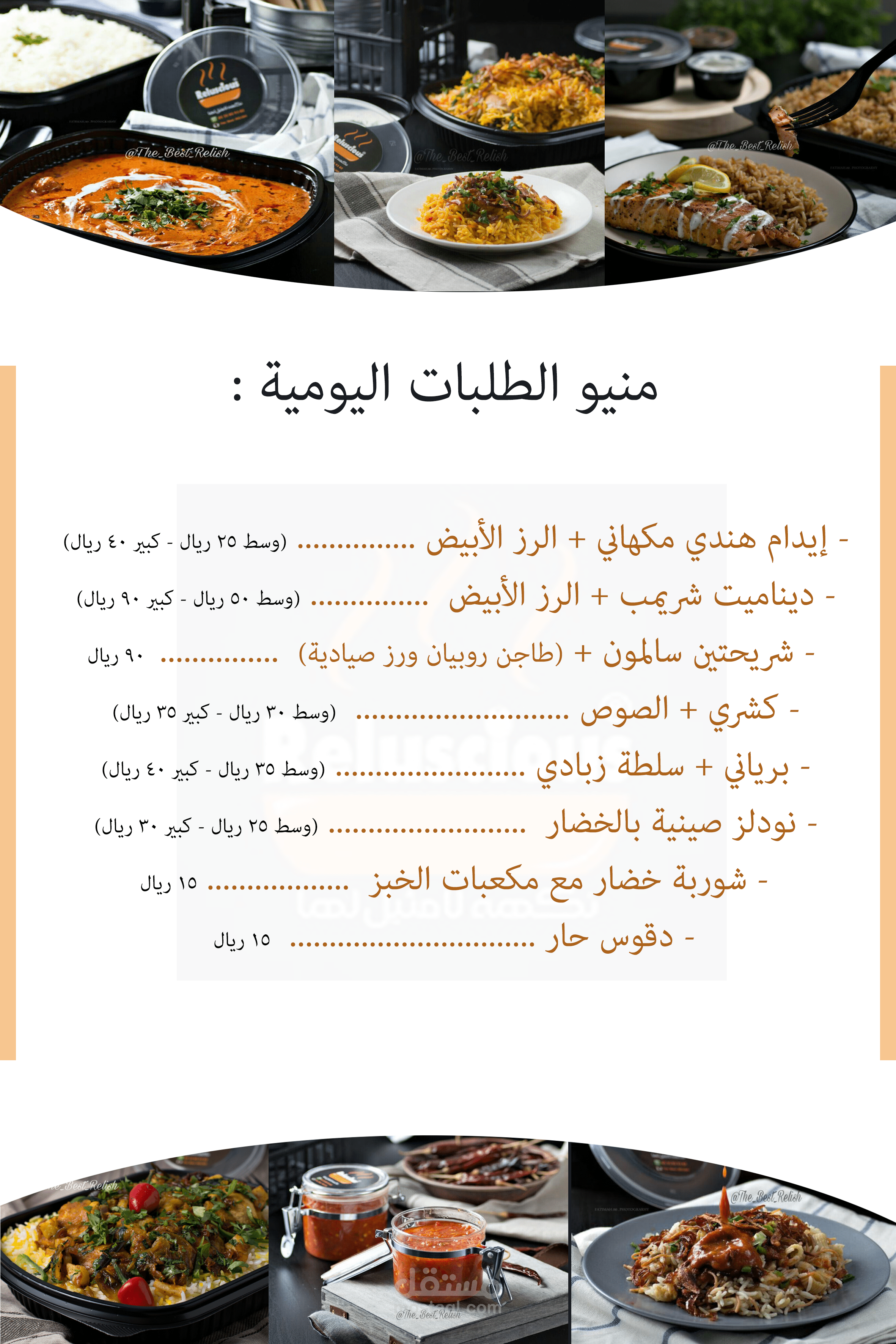 منيو لمشروع منزلي