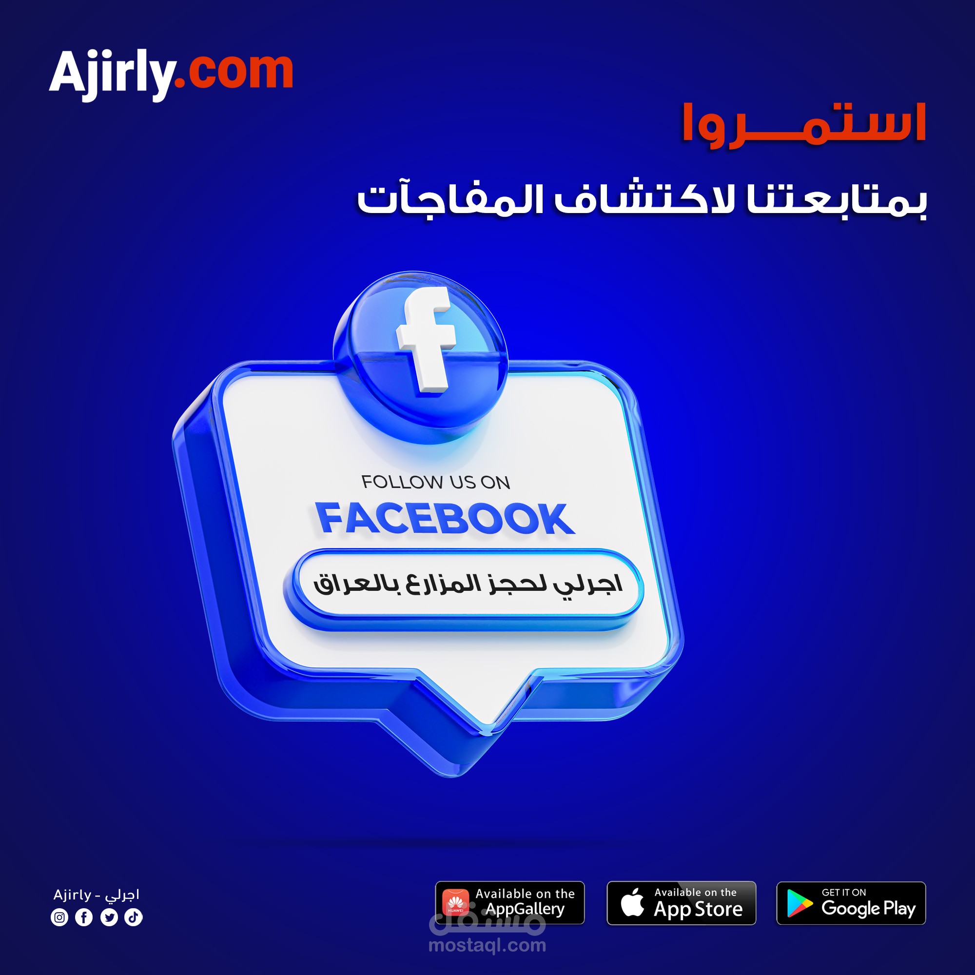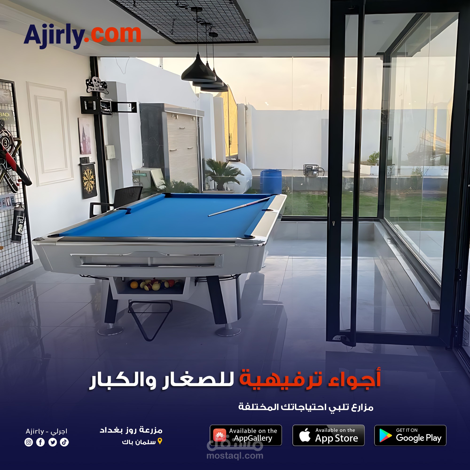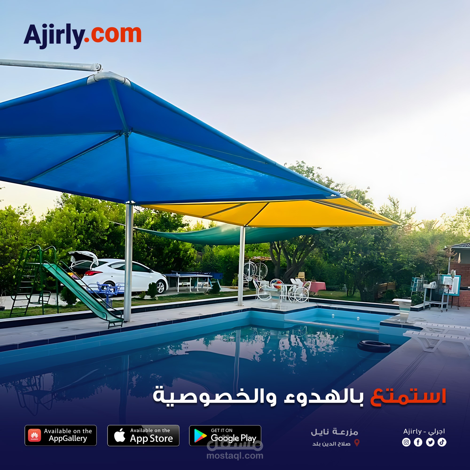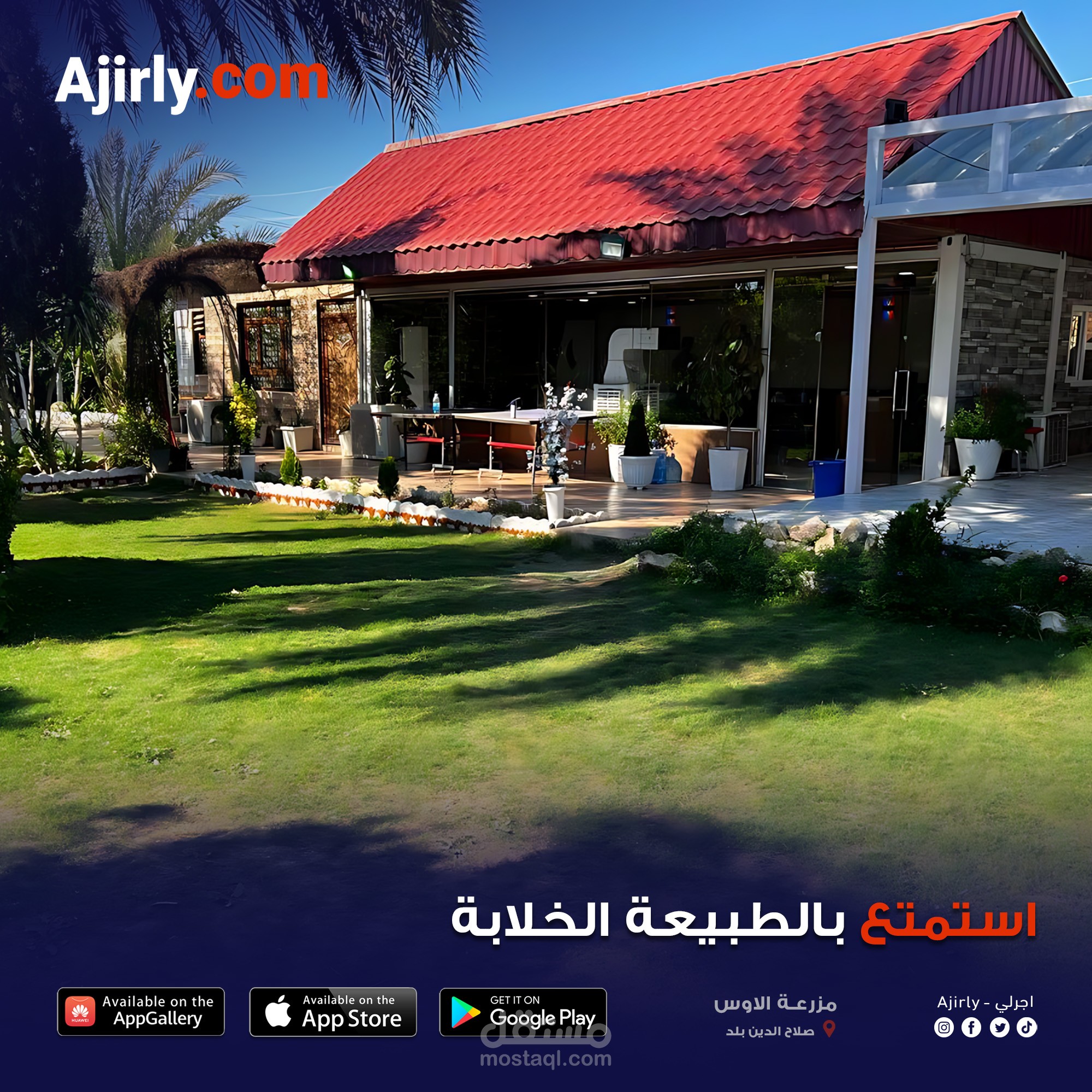 أعمل كمصمم إعلاني لتطبيق Ajirly.com وهو تطبيق متخصص في تأجير المزارع السياحية داخل العراق.