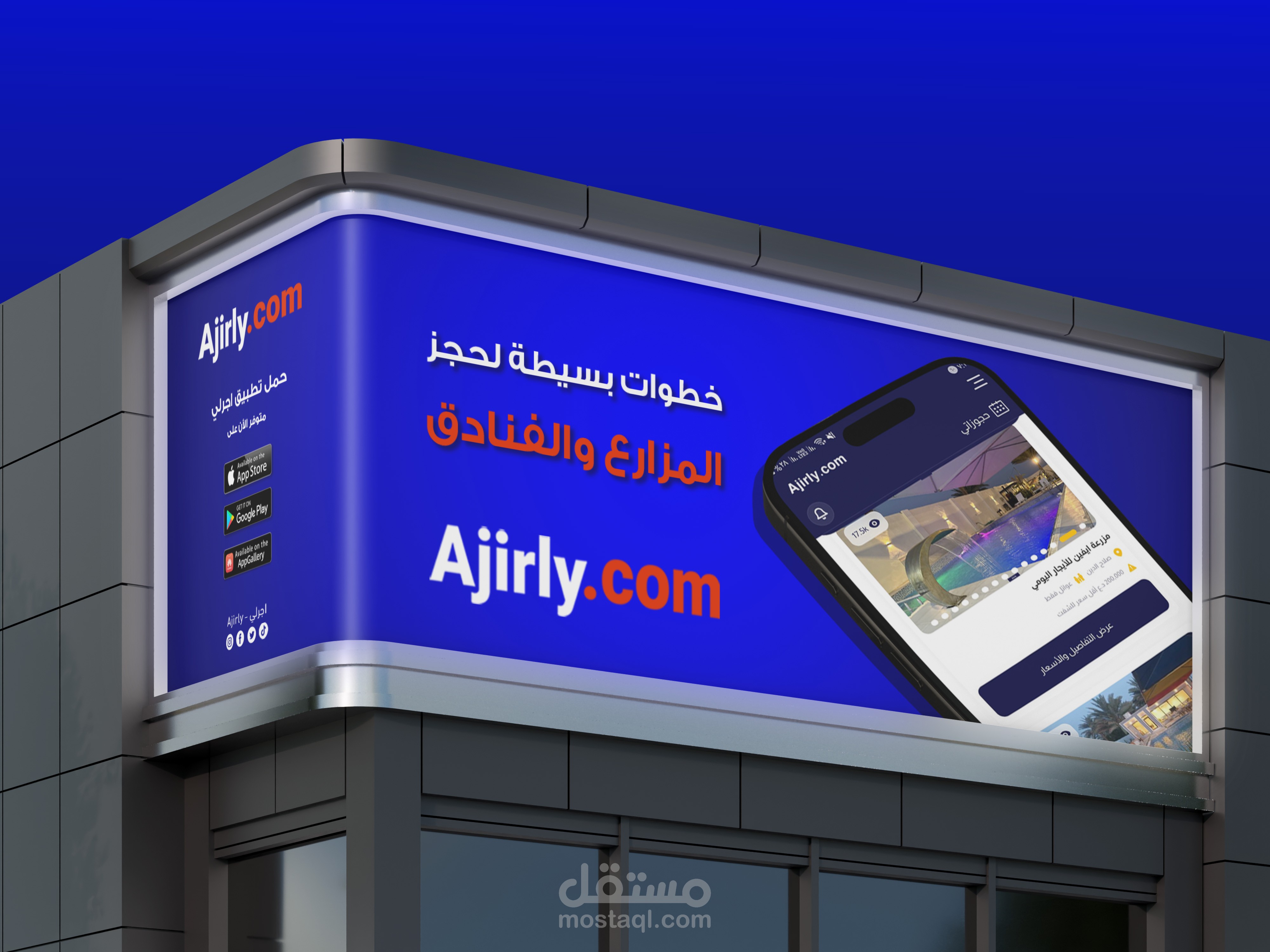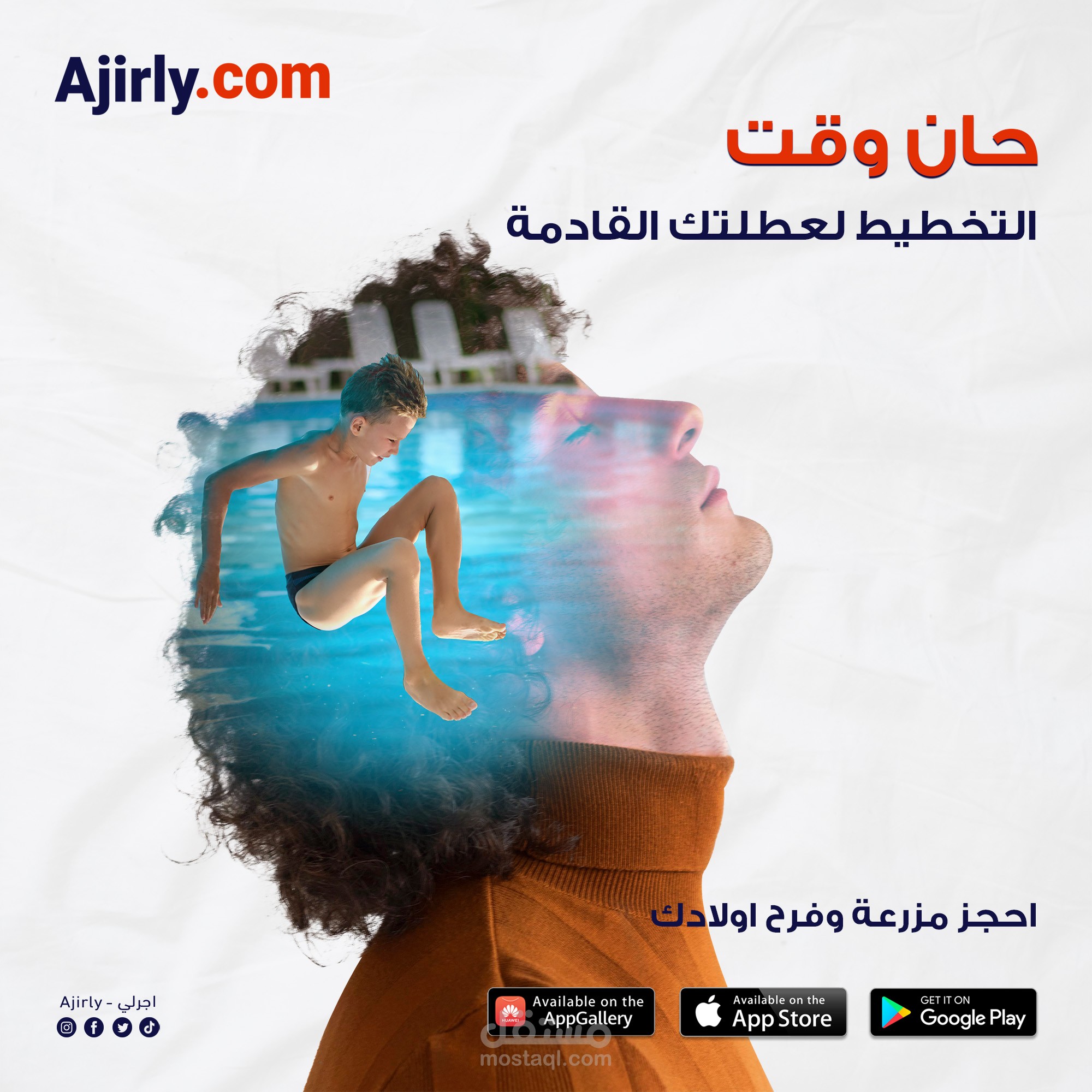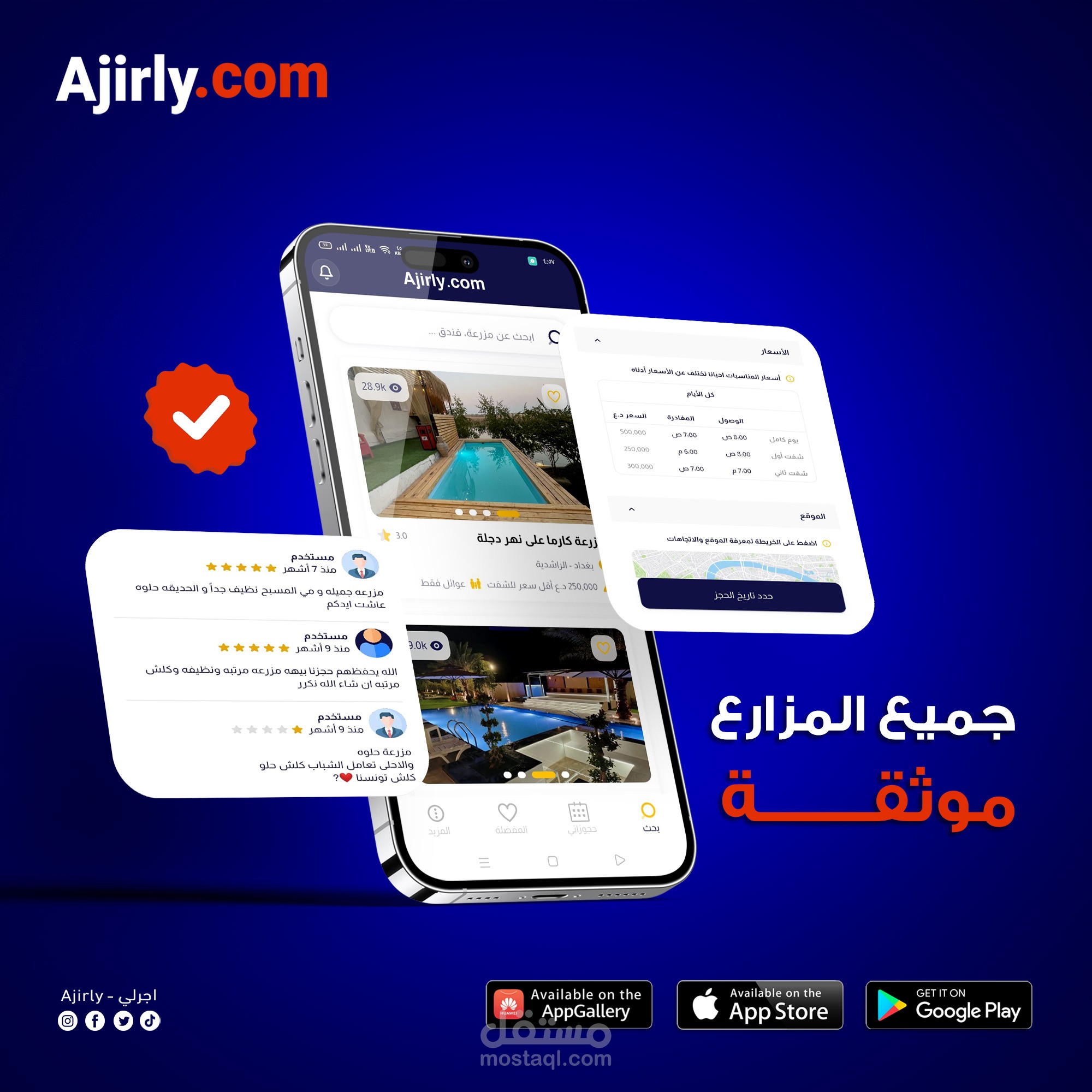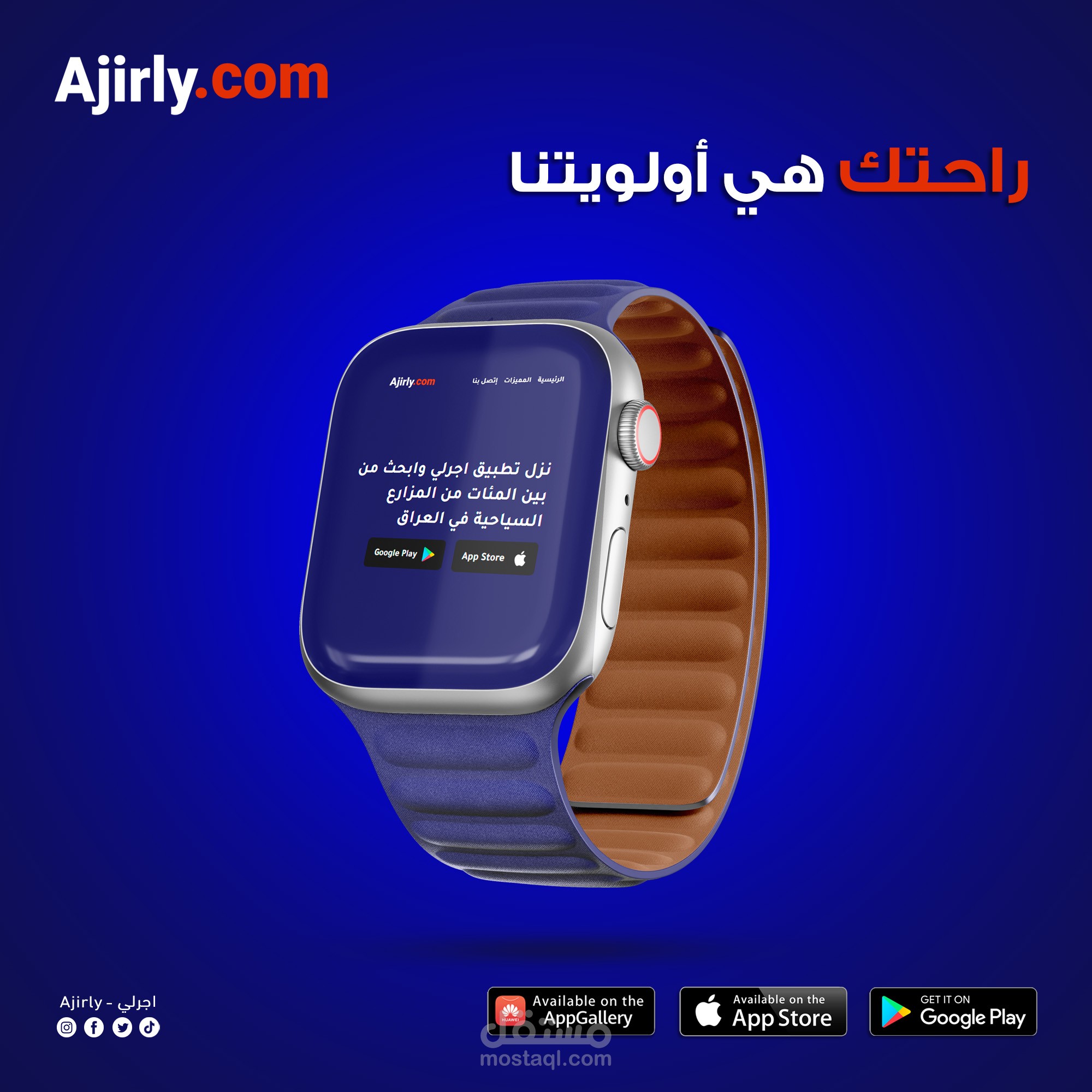 أعمل كمصمم إعلاني لتطبيق Ajirly.com وهو تطبيق متخصص في تأجير المزارع السياحية داخل العراق.
