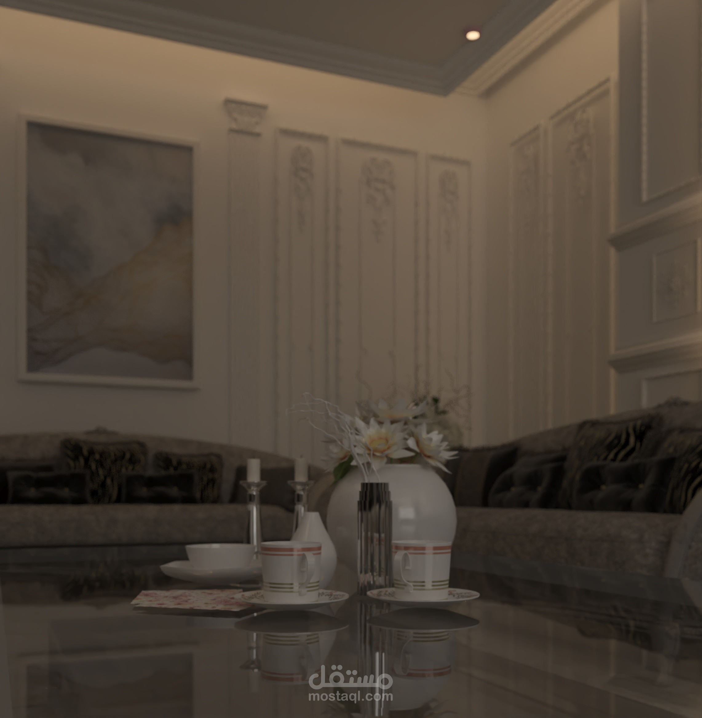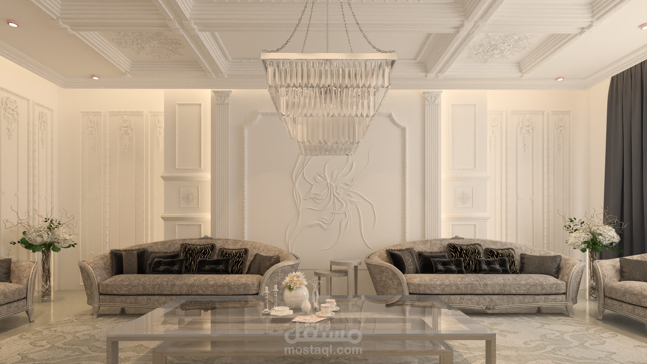 مجلس تمّ تصميمه بنمط كلاسيكي مع زخارف بسيطة