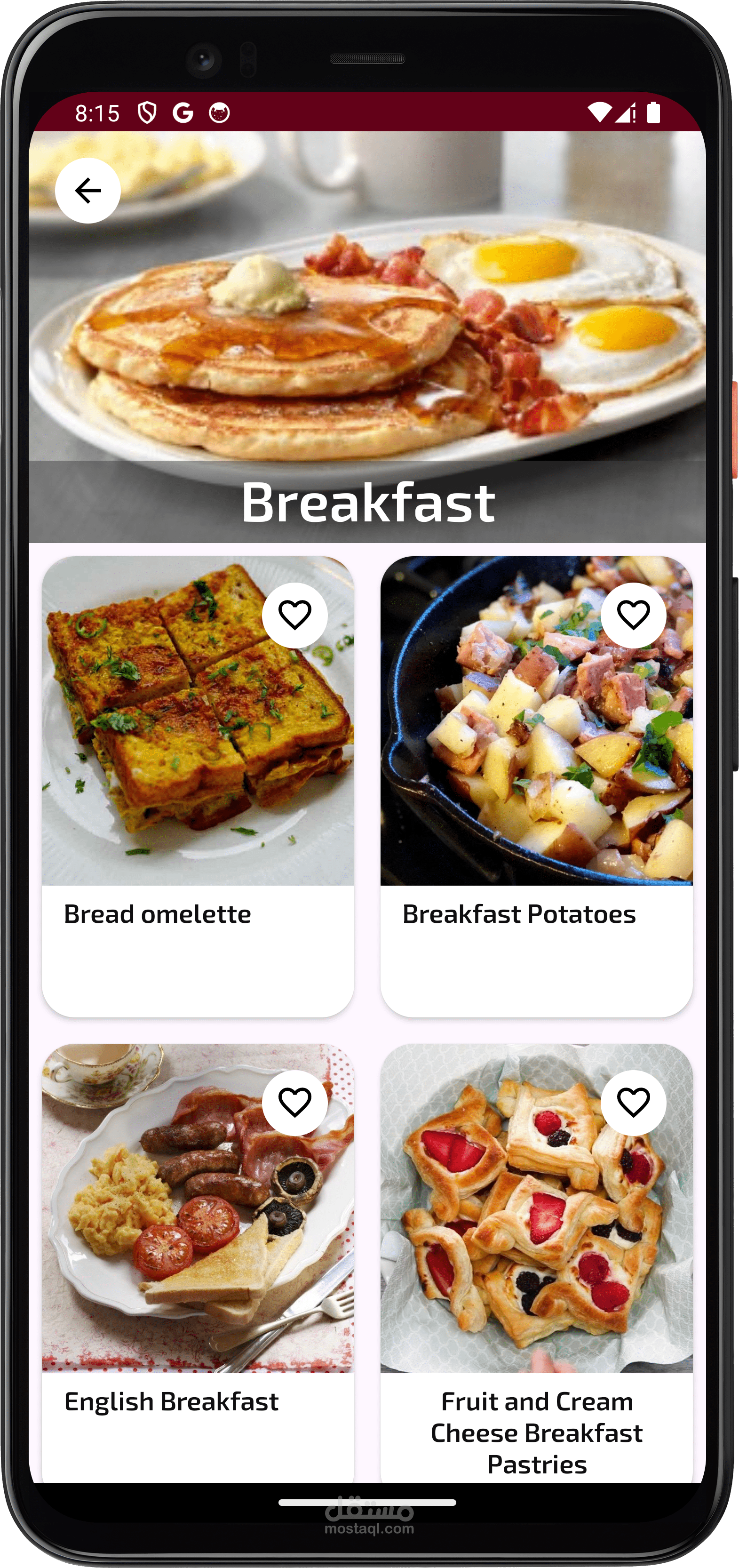 · الوجبات المفضلة: يمكن للمستخدم إضافة وجبة إلى المفضلة أو إزالة واحدة منها.