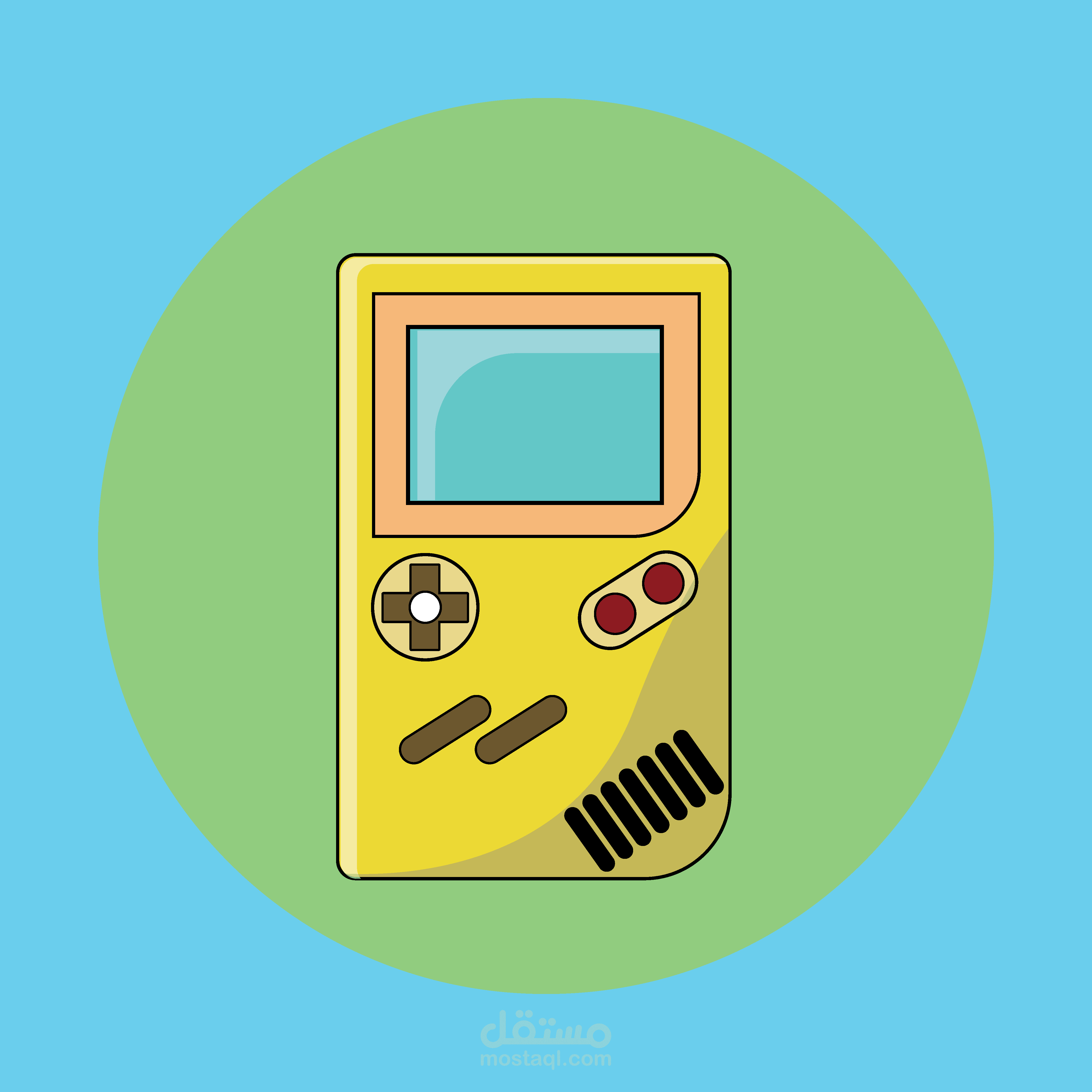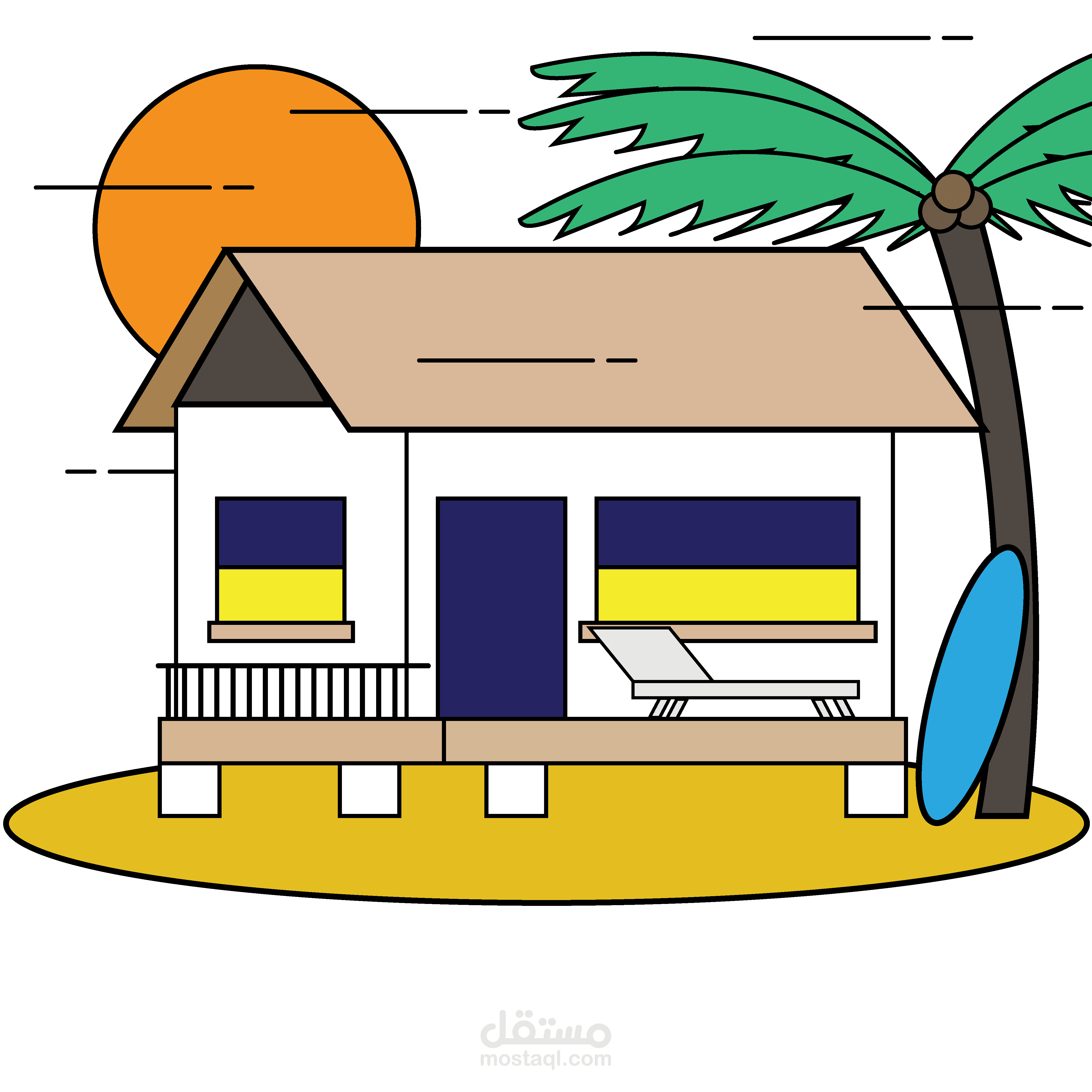 رسم بسيط لعناصر مختلفة بأسلوب حيوي ومبسط ( flat art ) .