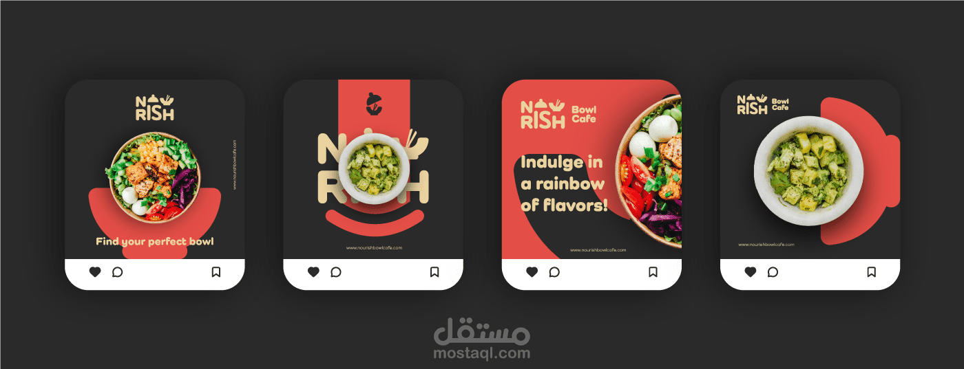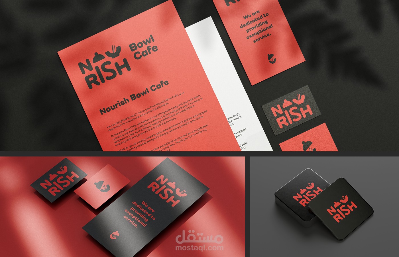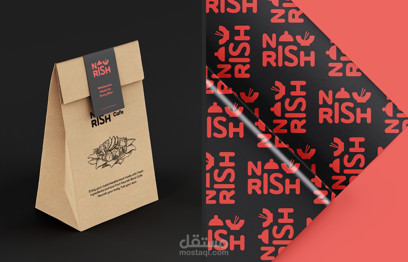 Nourish Bolw Cafe هي علامة تجارية لمطعم وجبات صحية لتنظيم النظام الغذائي وهذا الذي تشاهدون هو براندينغ كامل ل Nourish Bolw Cafe.