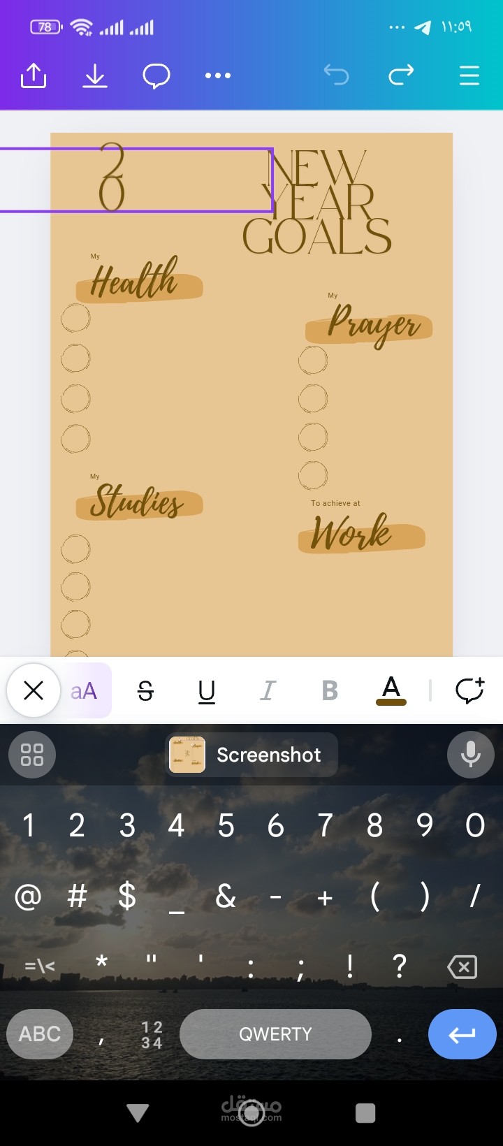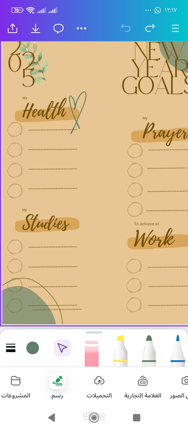 انفوجرافيك أهداف السنة الجديدة قابل للطباعة يتميز ببساطة التصميم وتوازن الألوان