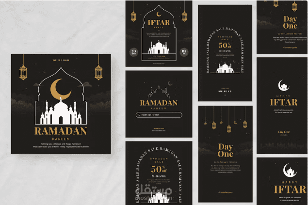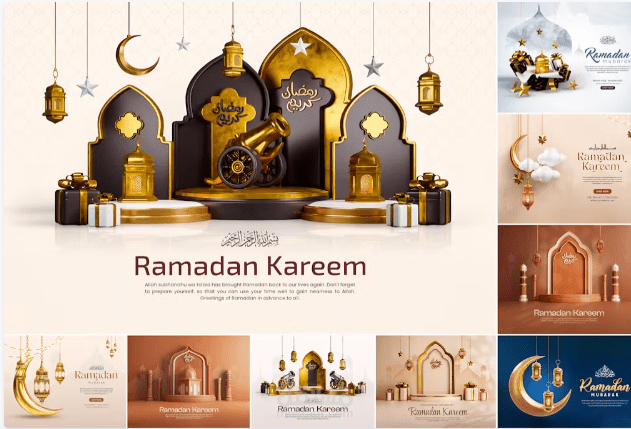 Choose Ramadan-themed imagery such as mosques, crescent moons, lanterns, dates, and traditional Arabic patterns.
