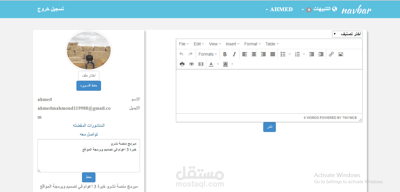 منصة نشر الكتروني تسمح للمستخدمين بنشر اي موضوع او طلب اي شئ وهناك نظام محادثات بين المستخدمين