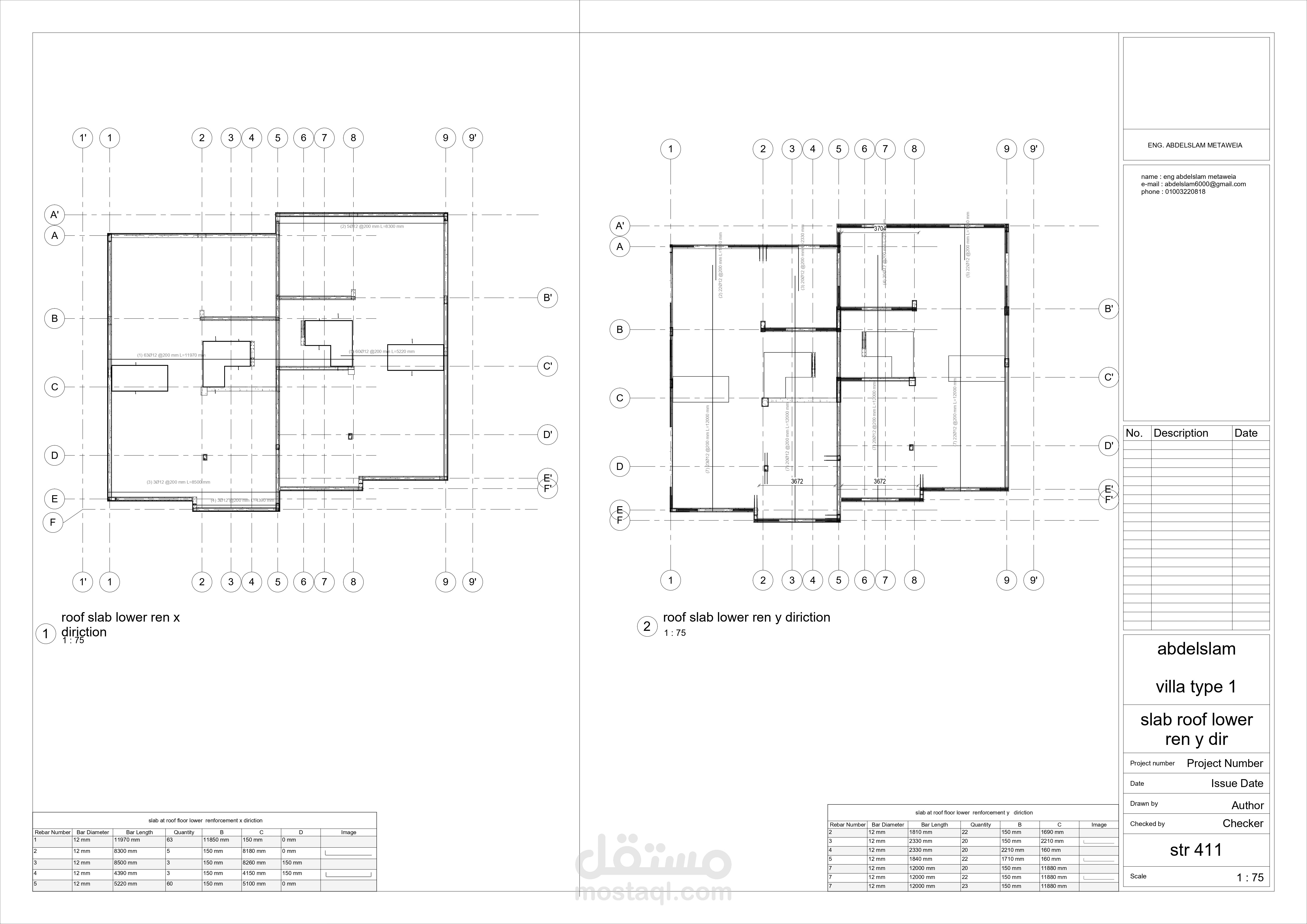 عمل الرسومات التنفيذية و اعداد جداول حصر الكميات لسقف فلات سلاب باسخدام برنامج الرفت