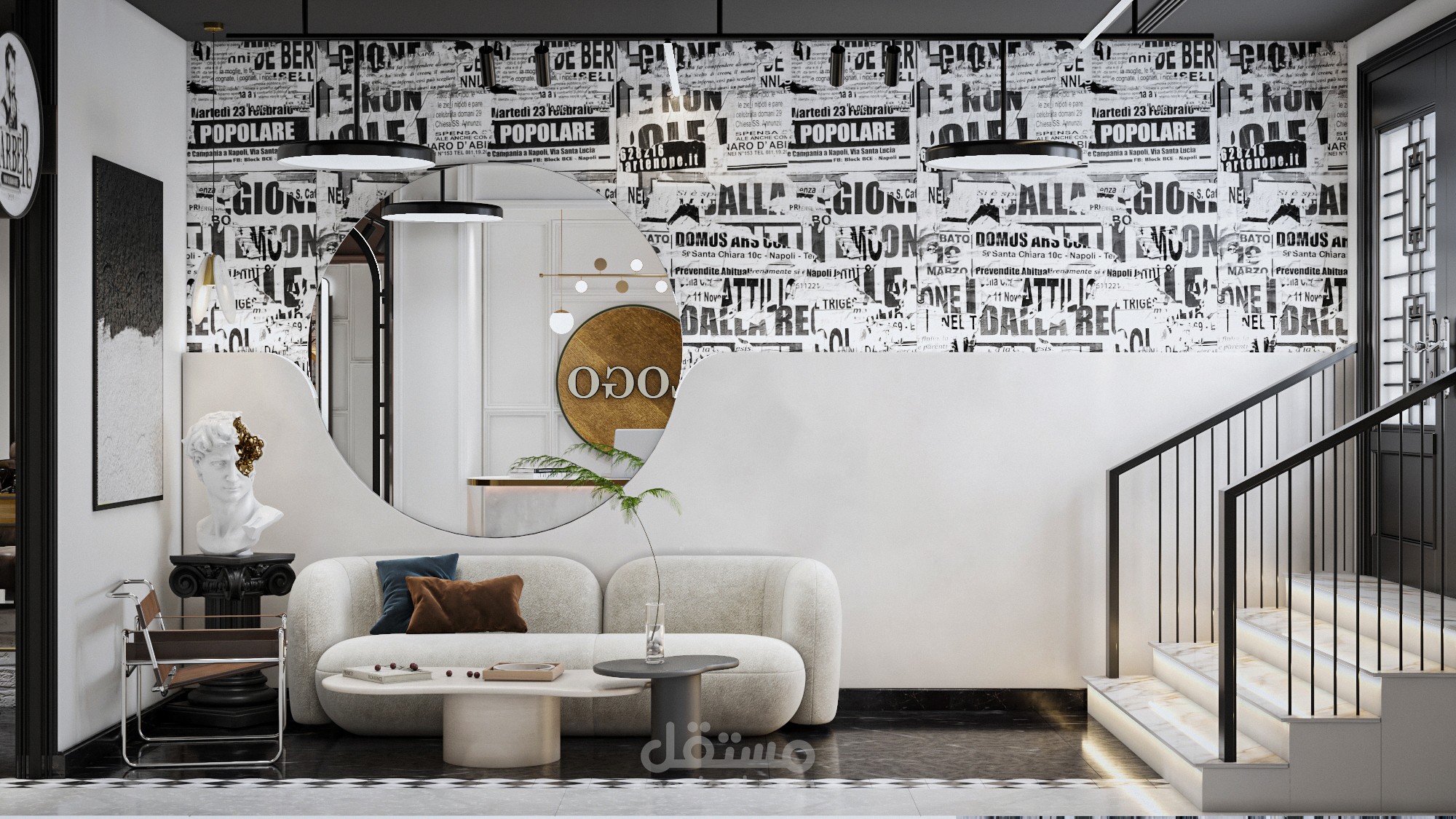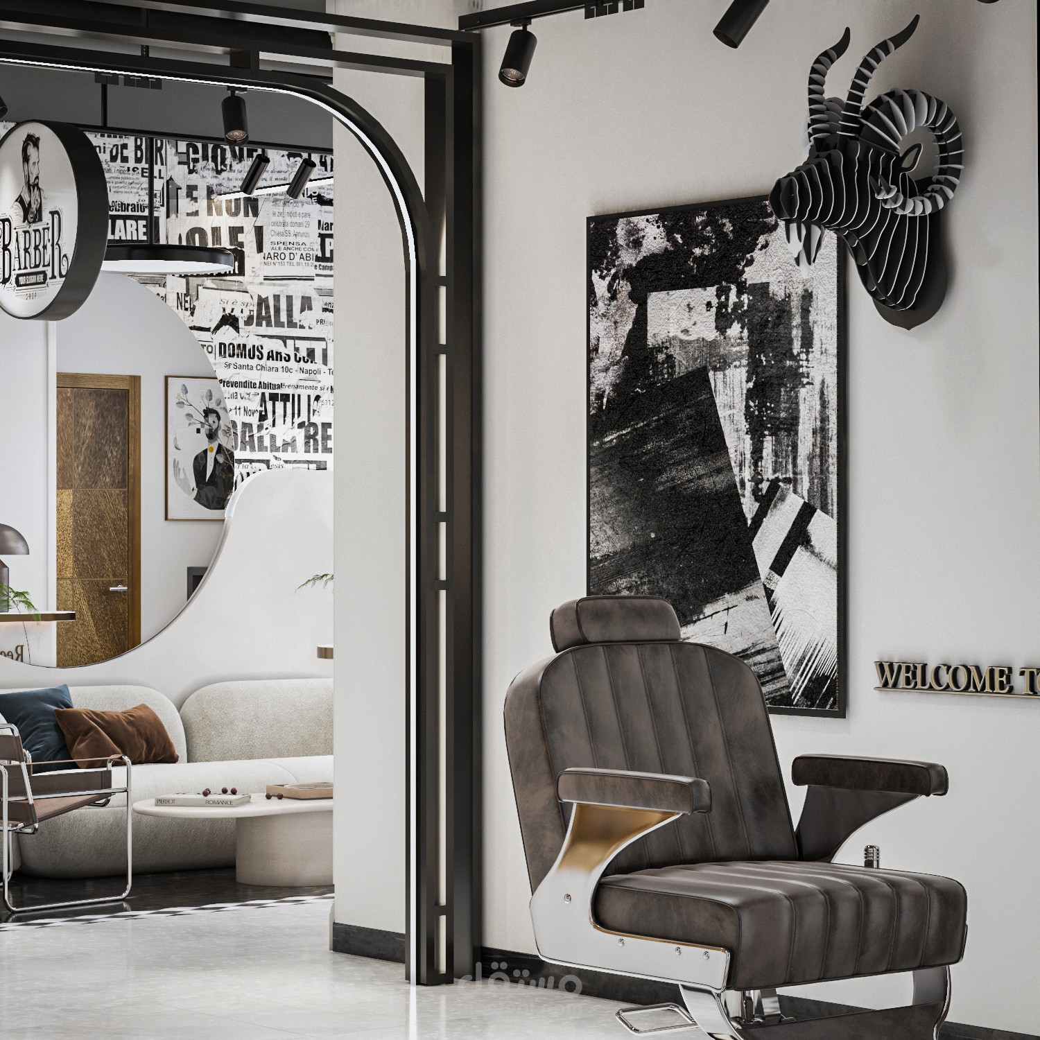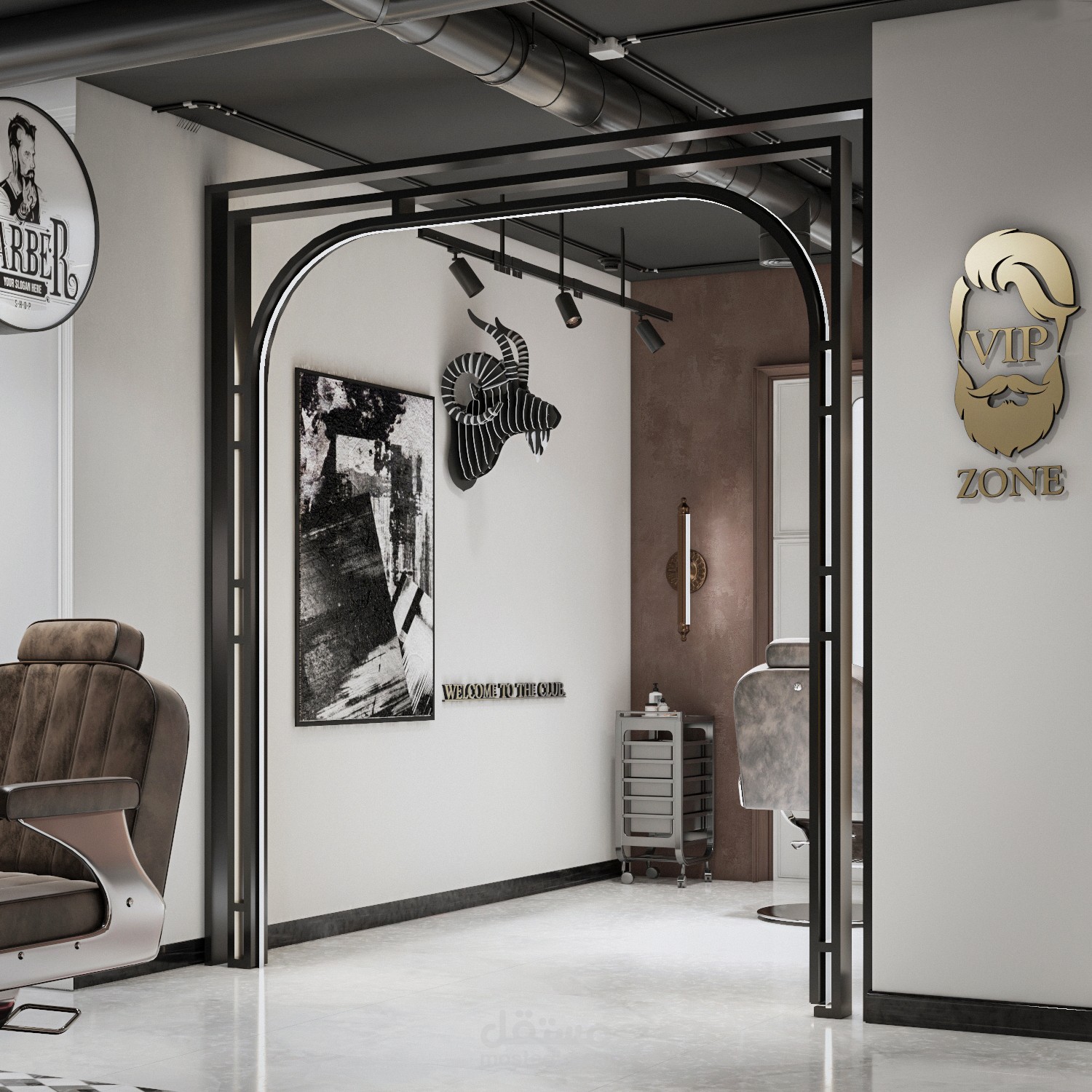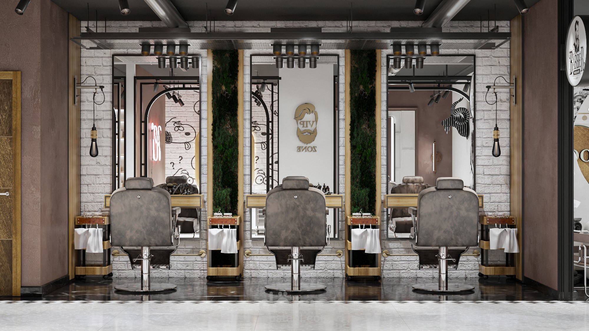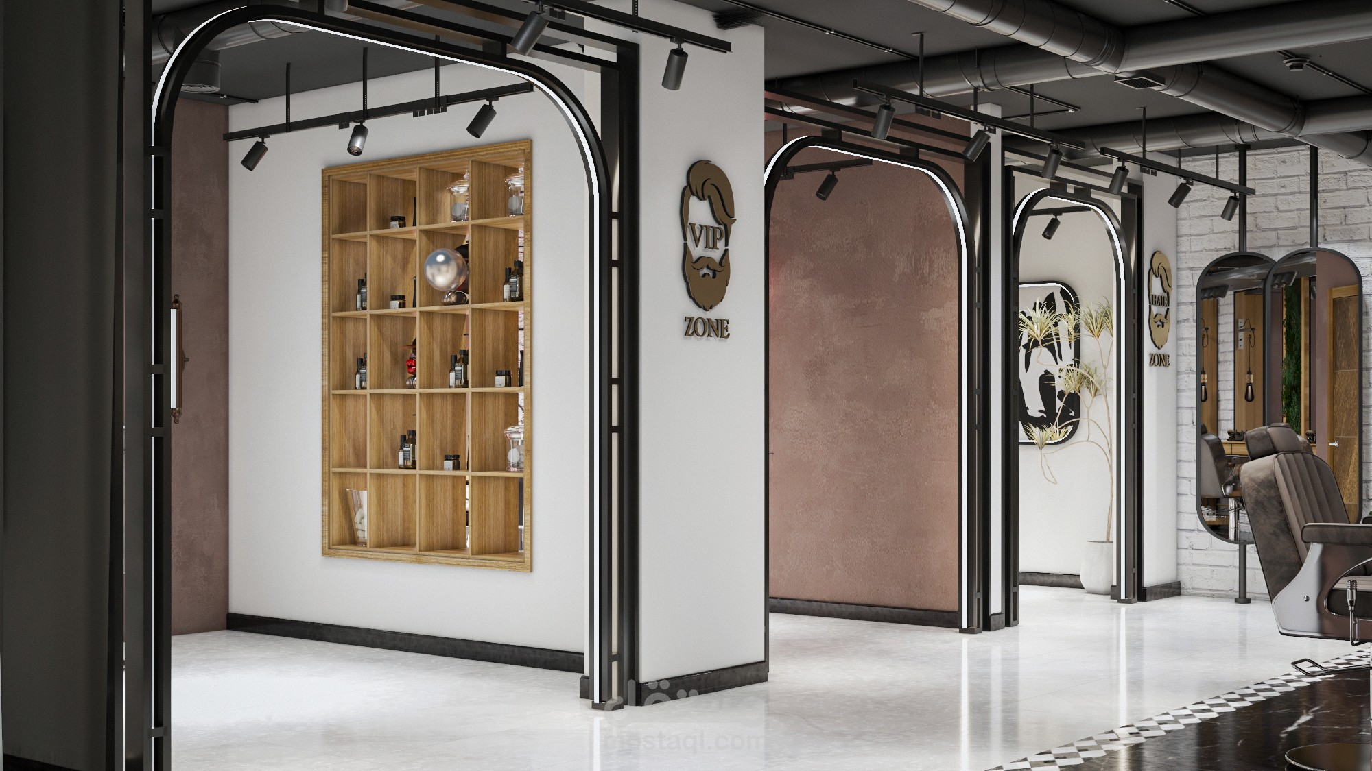 تصميم مودرن لمحل حلاقة رجالي بالقاهرة