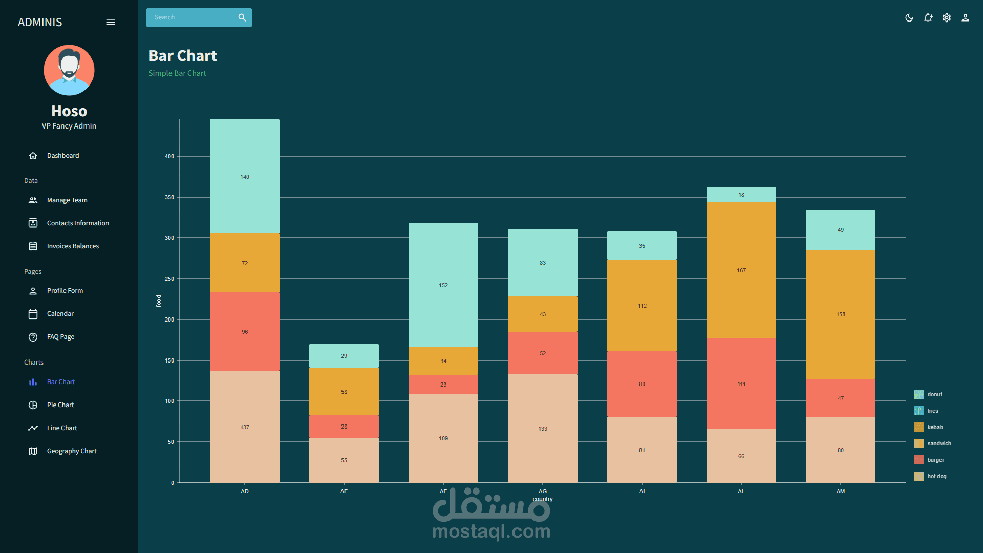 Nivo Library Integration: Integrate the Nivo library for data visualization within the dashboard to present complex data in a clear and intuitive manner. Nivo offers a wide range of customizable chart components, including bar charts, line charts, pie charts, and more, making it ideal for creating interactive dashboards.