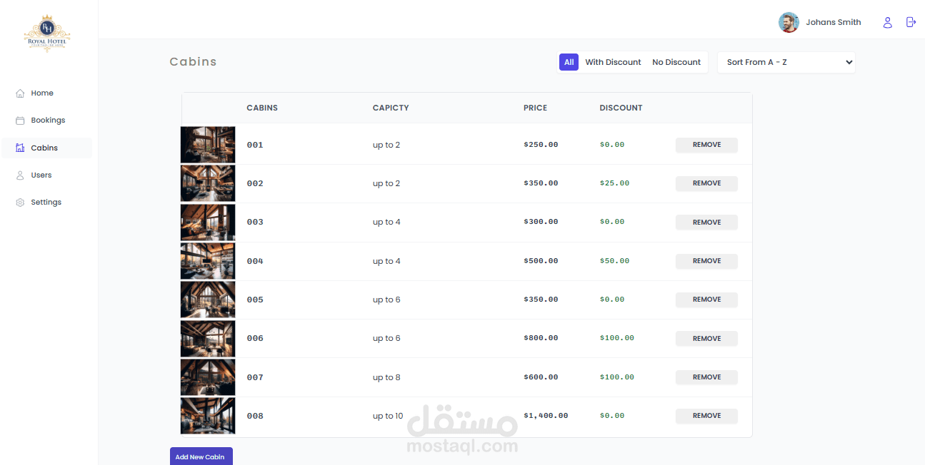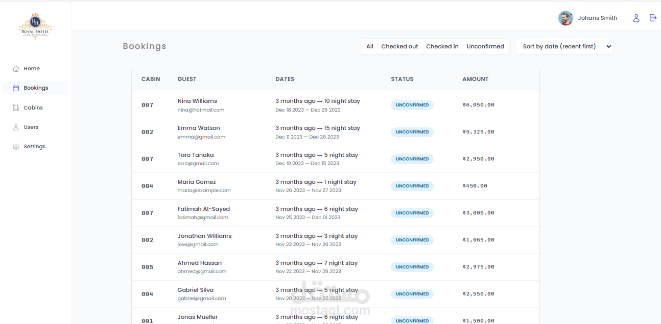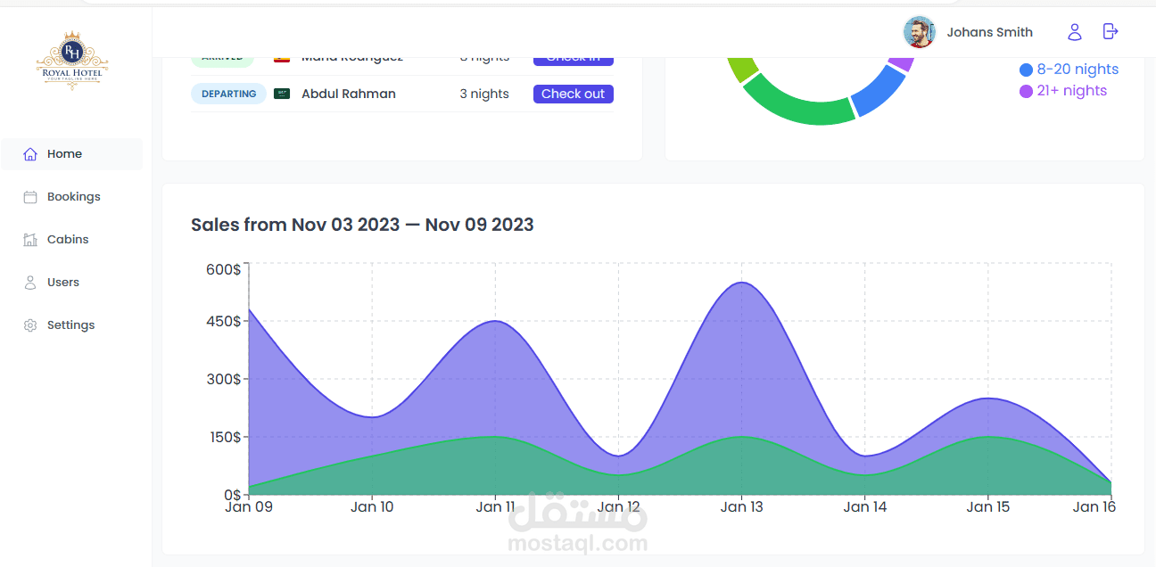 تطبيق لوحة تحكم الفندق باستخدام React JS هو تطبيق حقيقي مع الميزات مثل التحقق من مستخدمين، ترتيب وتصفية البيانات، وبرنامج خاص بالأساس للوصول المخصص إلى خلفية السيرفر.