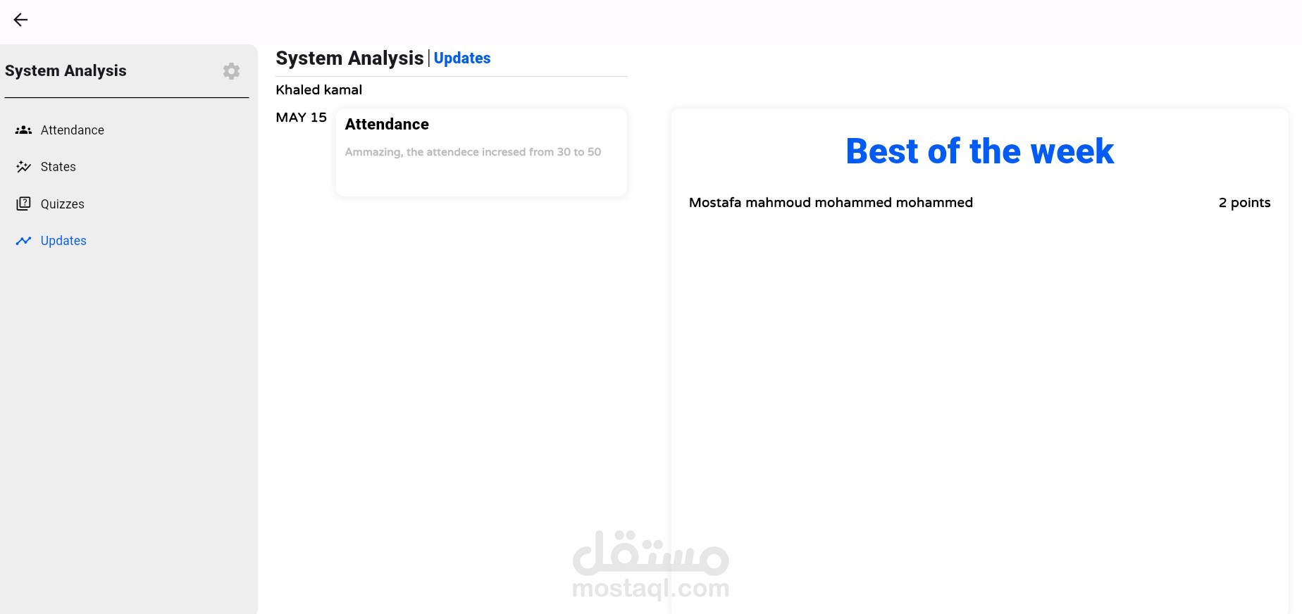 Weekly leaderboard showcasing top-performing students based on quiz scores.