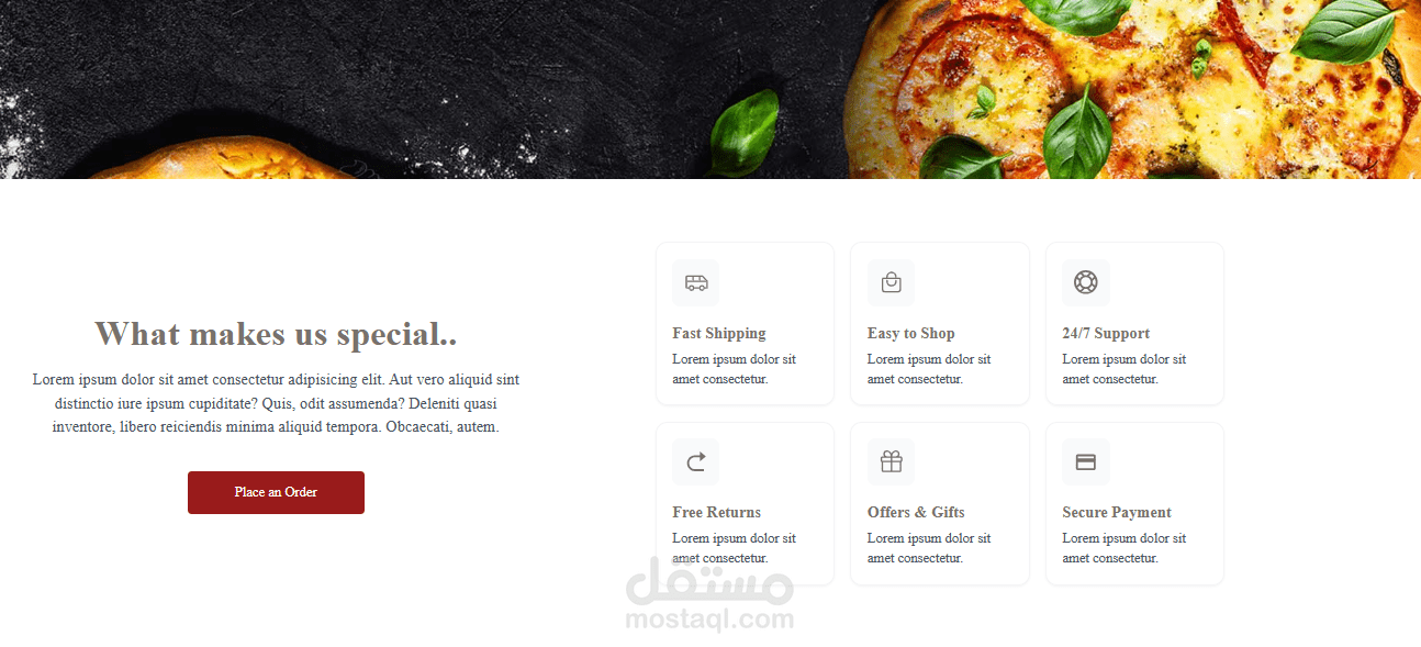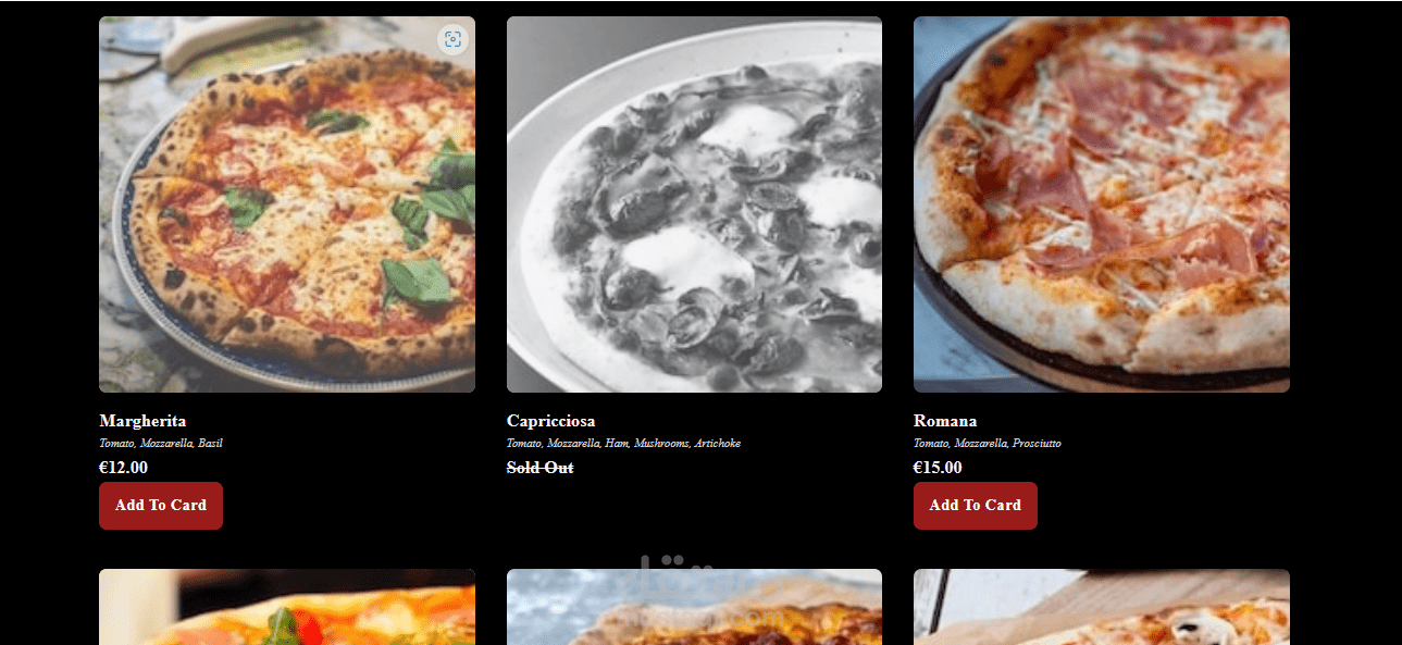 تم بناء تطبيق مطعم لطلب الطعام باستخدام React Hooks و Redux Toolkit و Tailwind CSS لإنشاء موقع تفاعلي لطلب الطلبات المباشرة عبر الإنترنت.