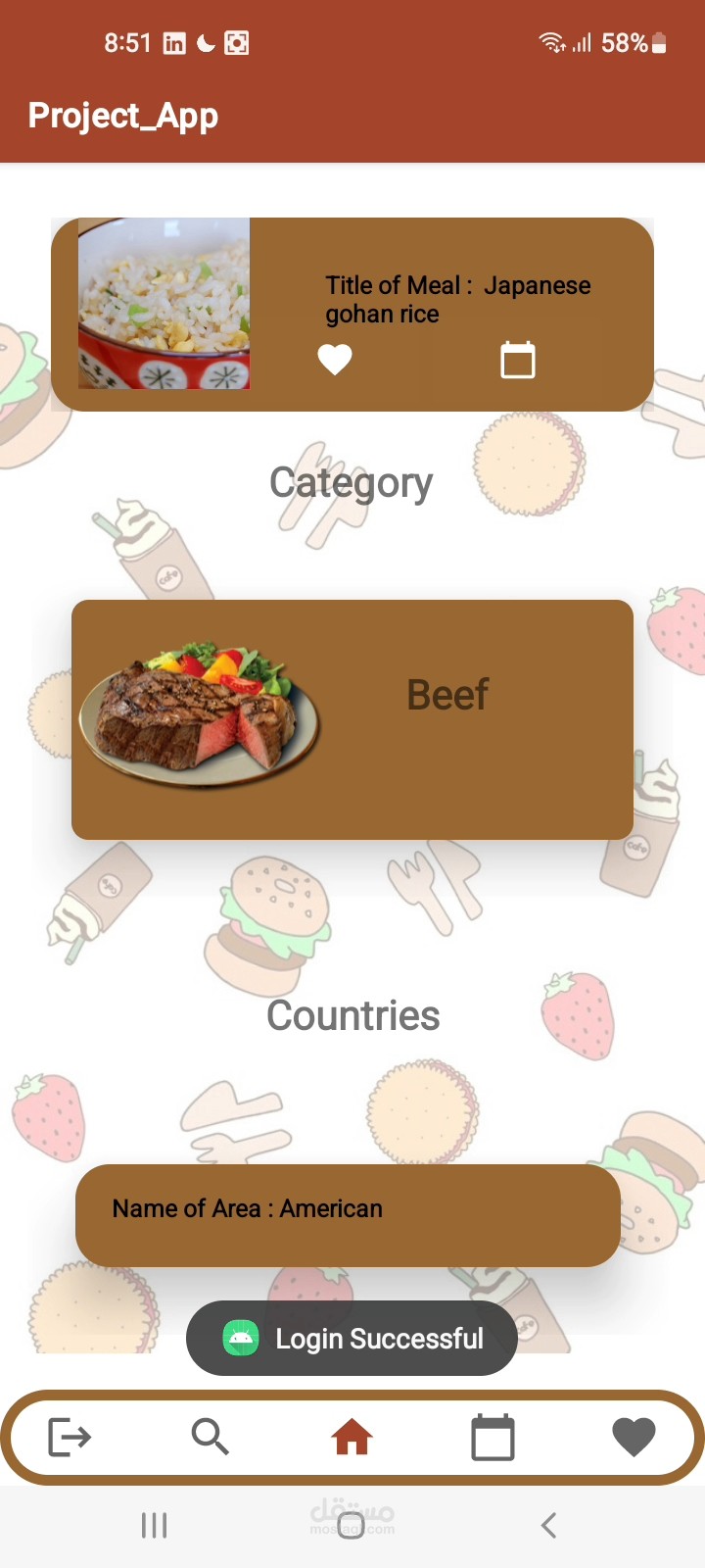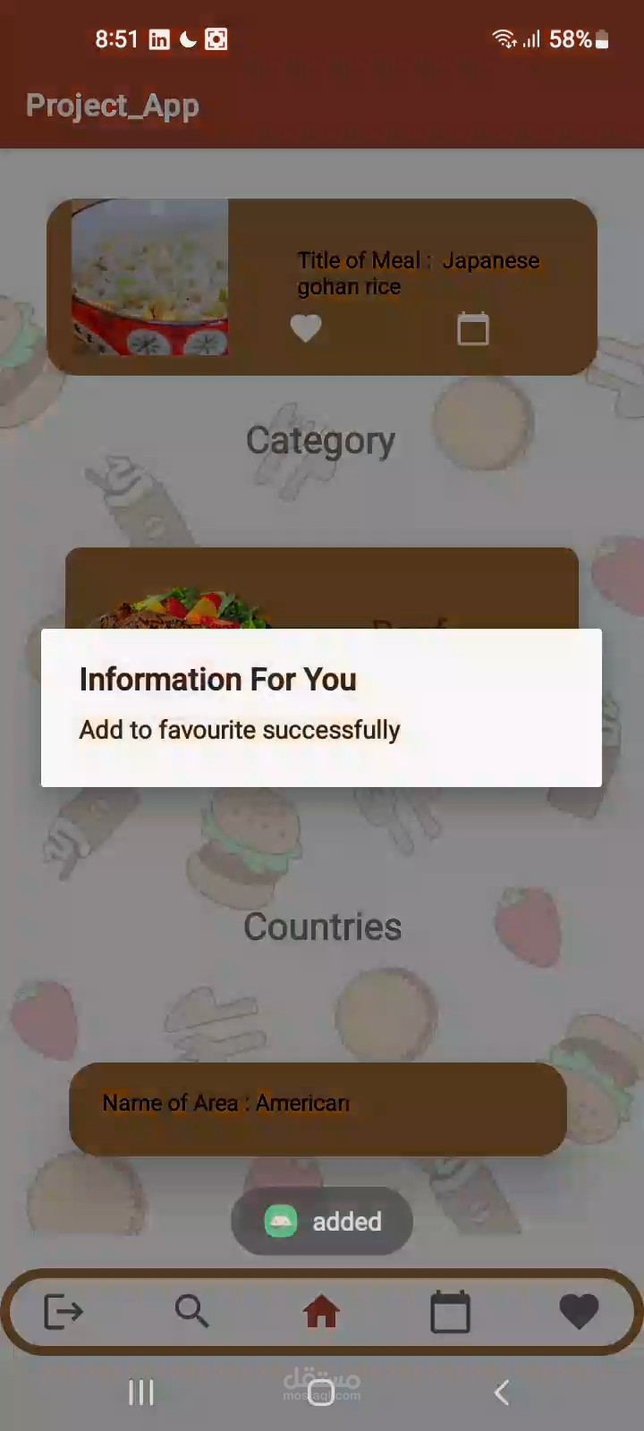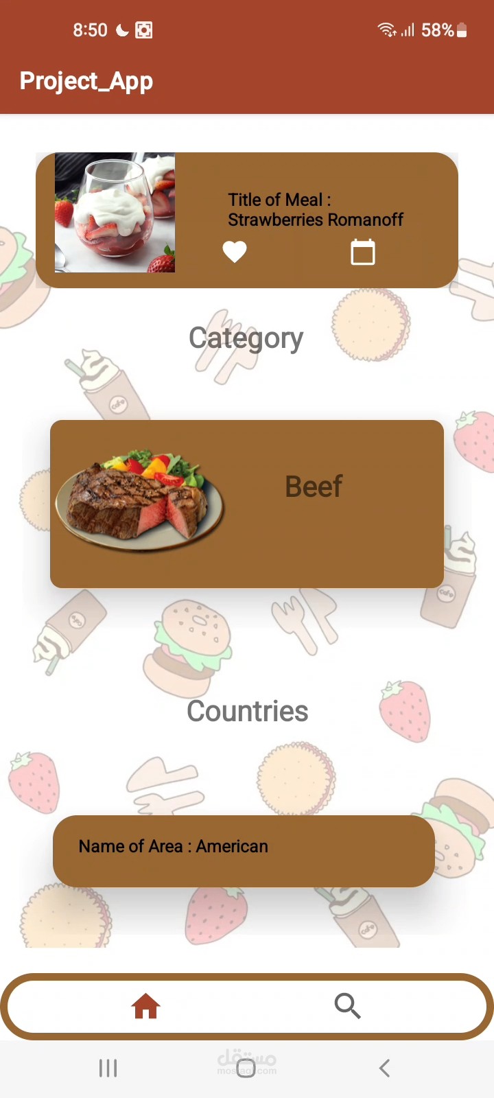 • Search for meals by category, area, and ingredients.