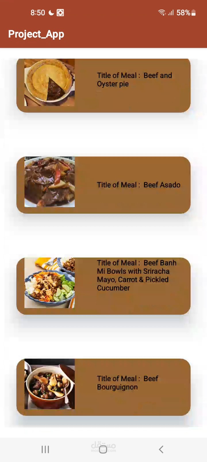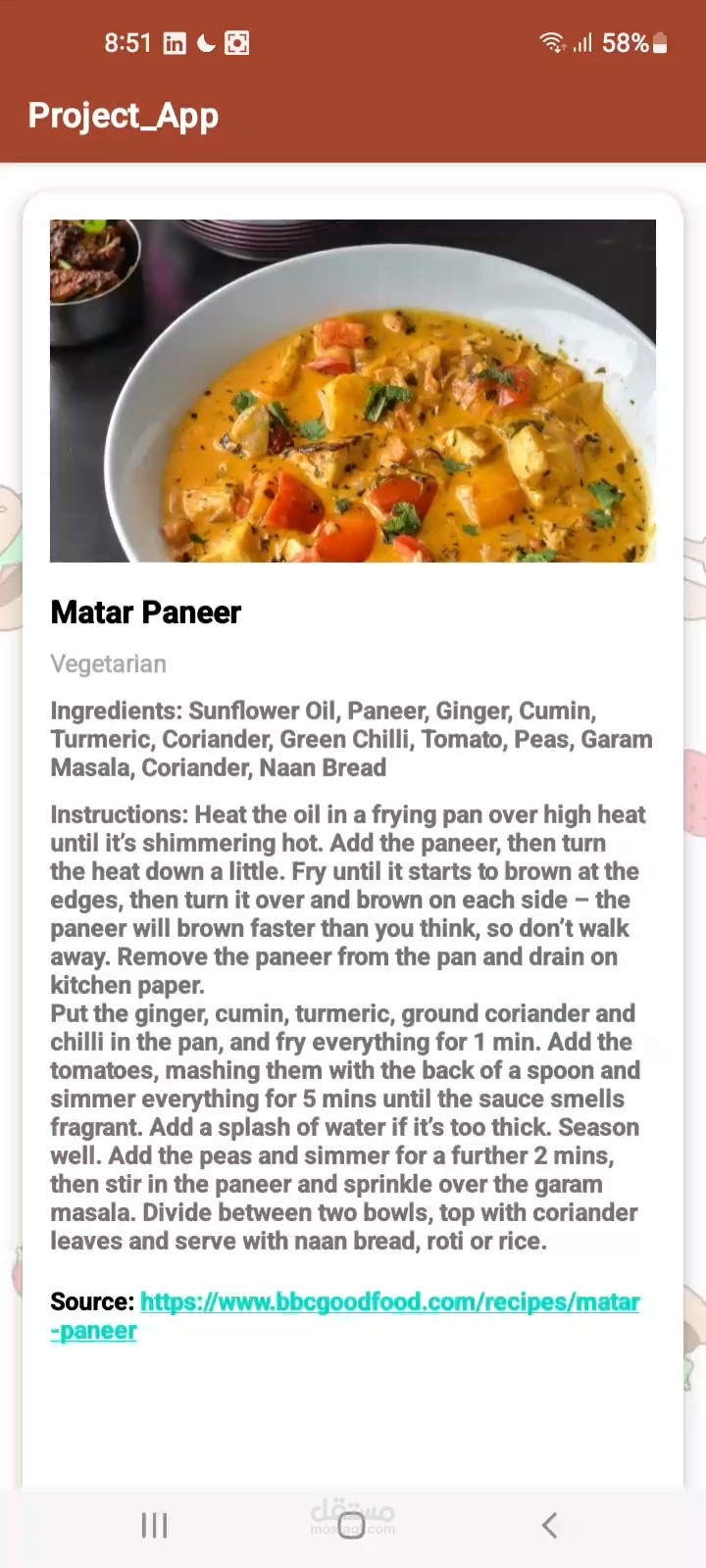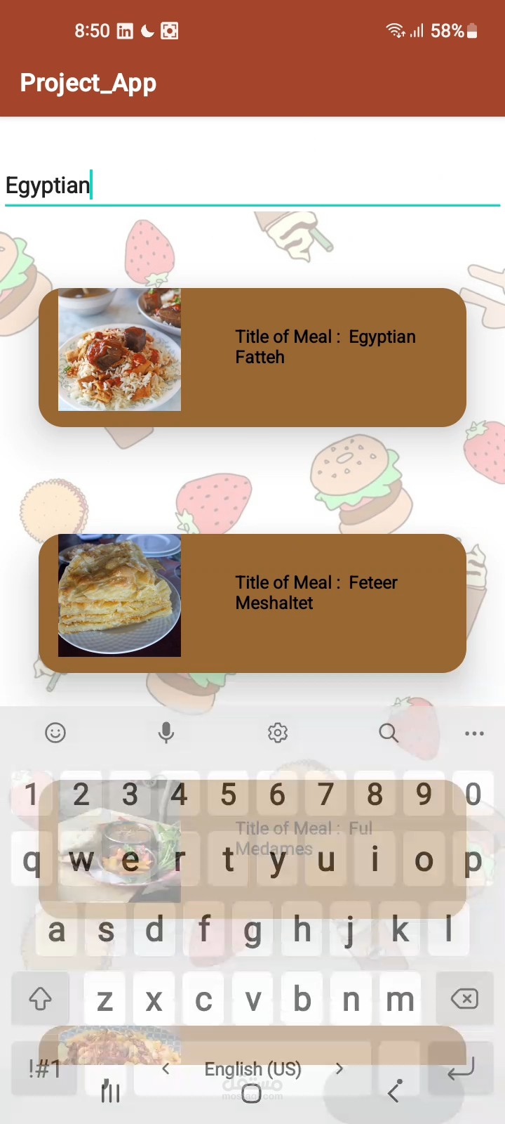 • Search for meals by category, area, and ingredients.