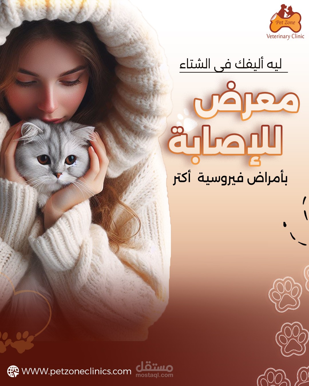 تصميم لعيادة الحيوانات الأليفه يوضح المزيد من الاهتمام بصحتك الاليف خصوصا وقت الشتاء وعرض خصومات على التطعيمات فى هذه الفترة الهامة