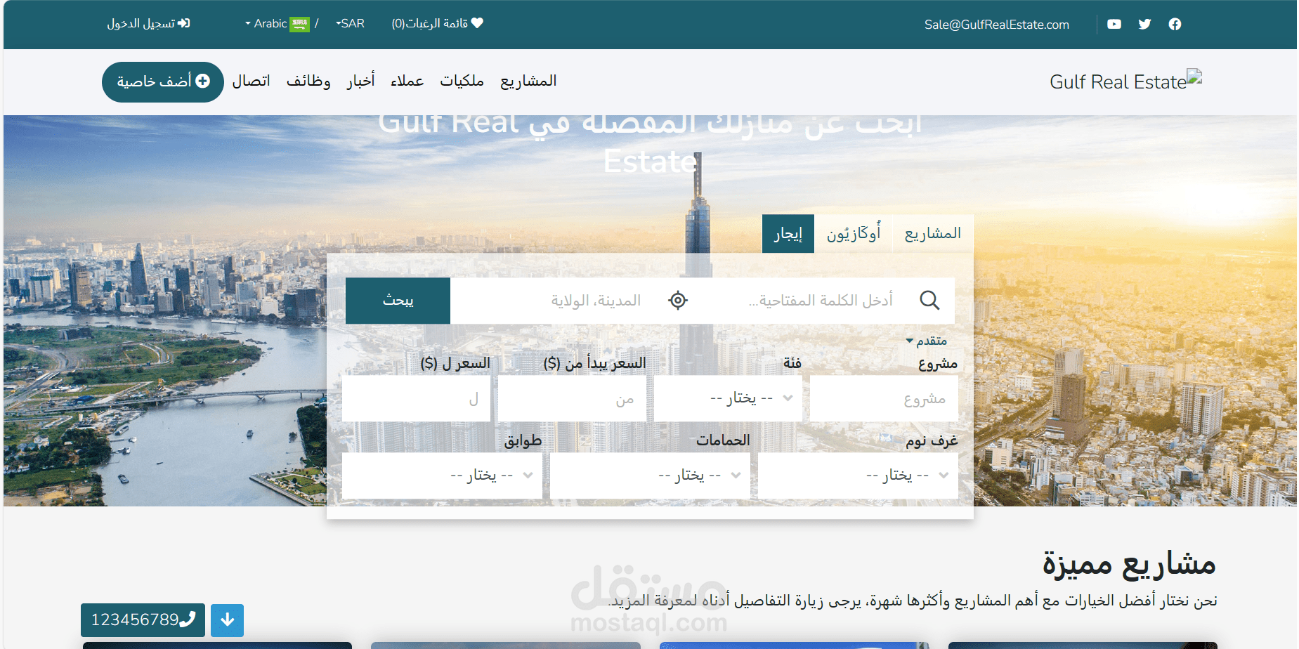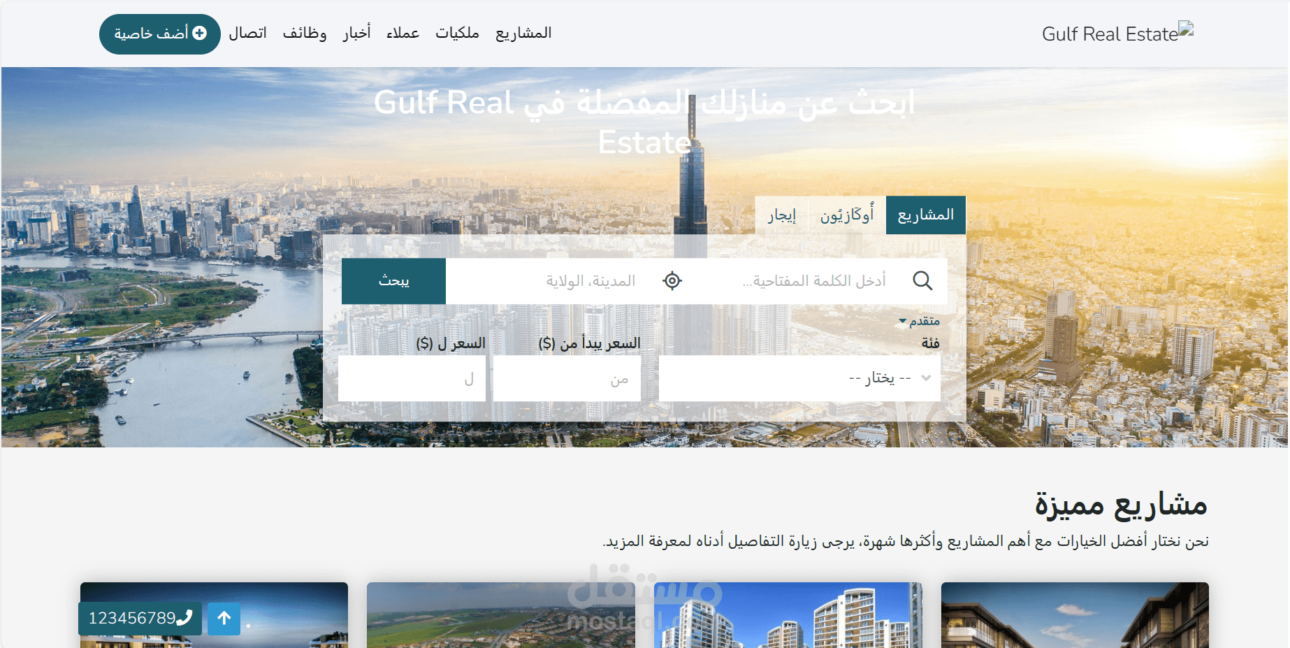 موقع شركة عقارات GulfRealEstate - بيع عقارات - تأجير - ملاك - مؤجرين - مشاريع - مقاولين - ادارة املاك - منشئ عقاري - مطور عقاري - مطورين عقاريين