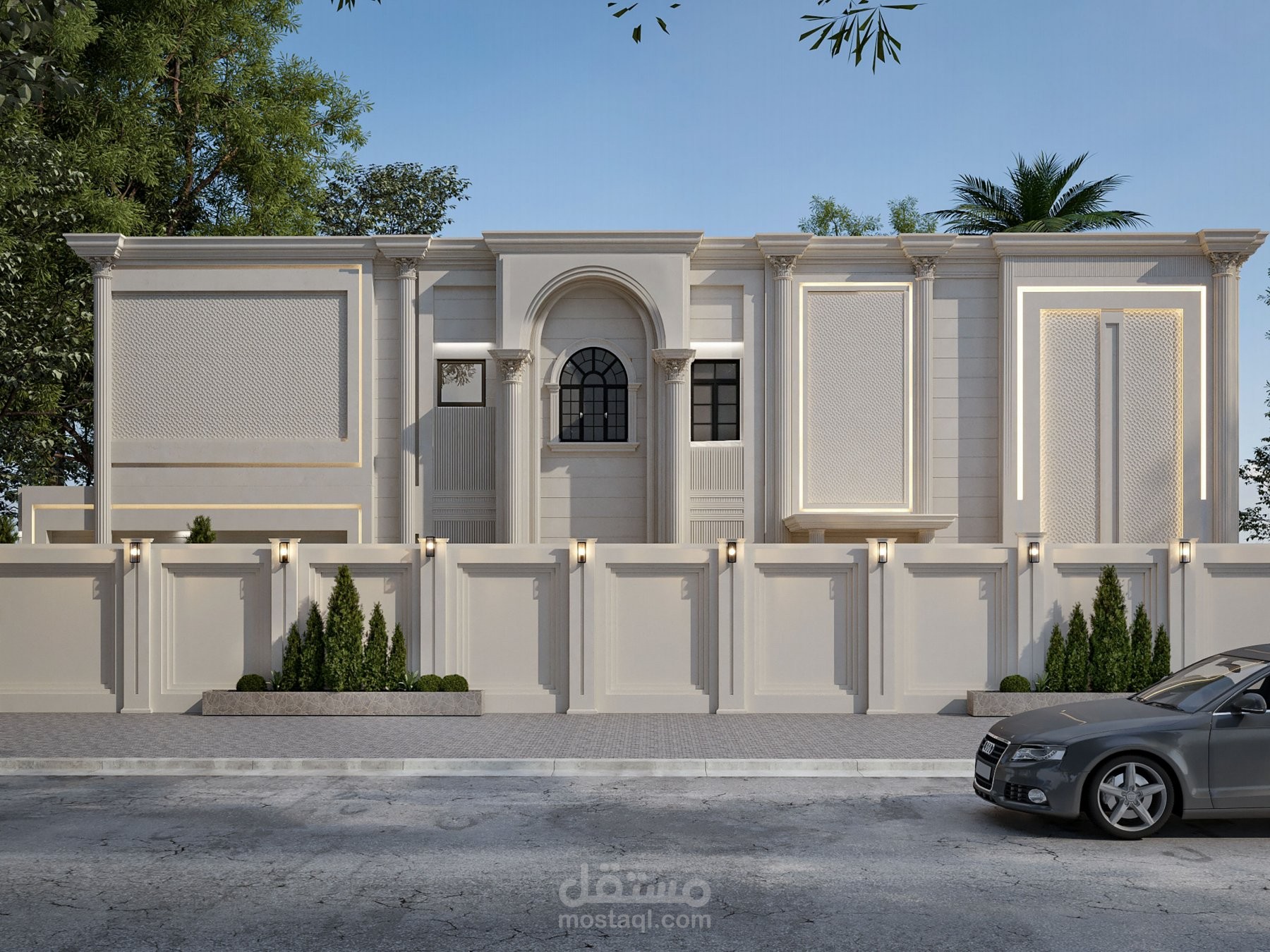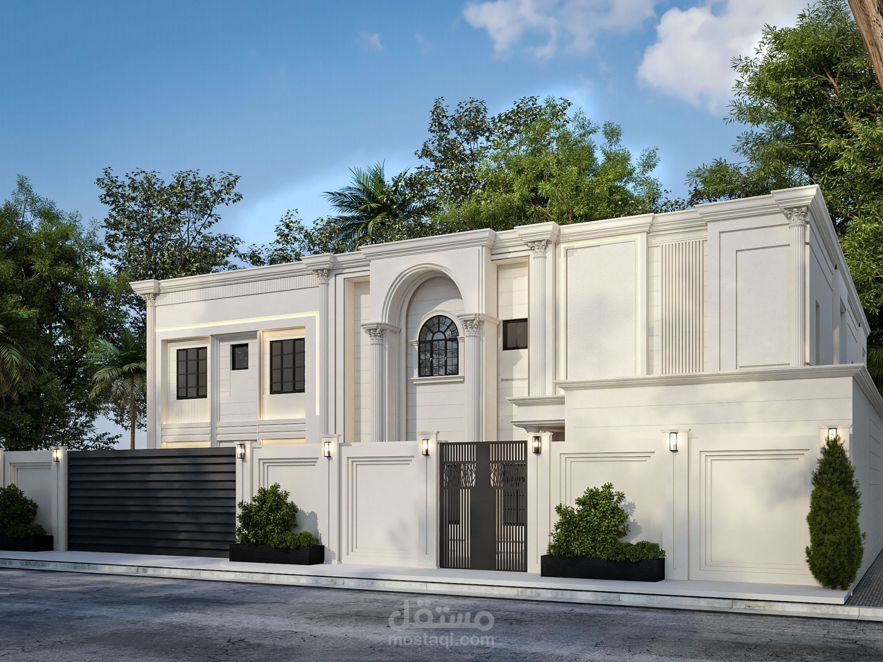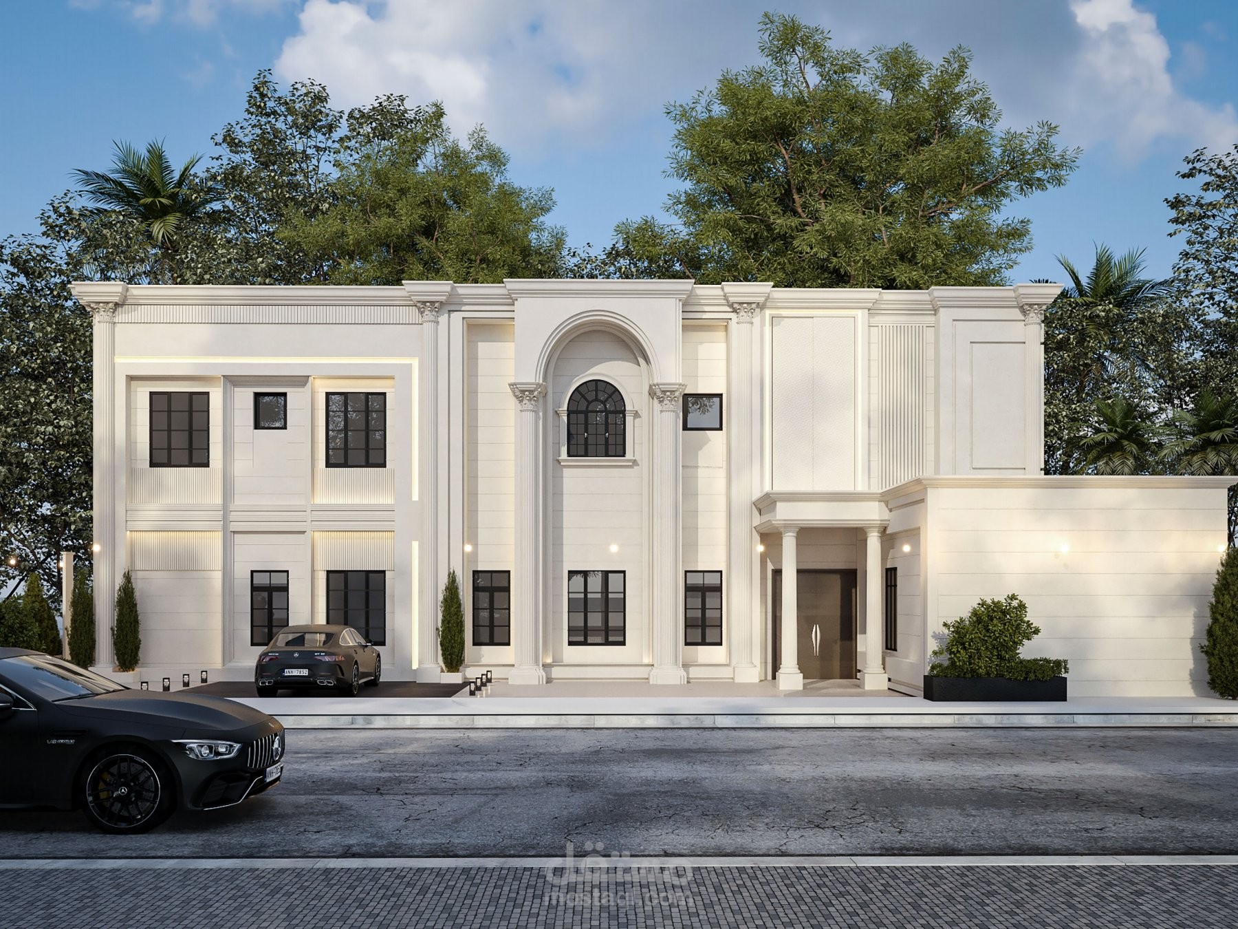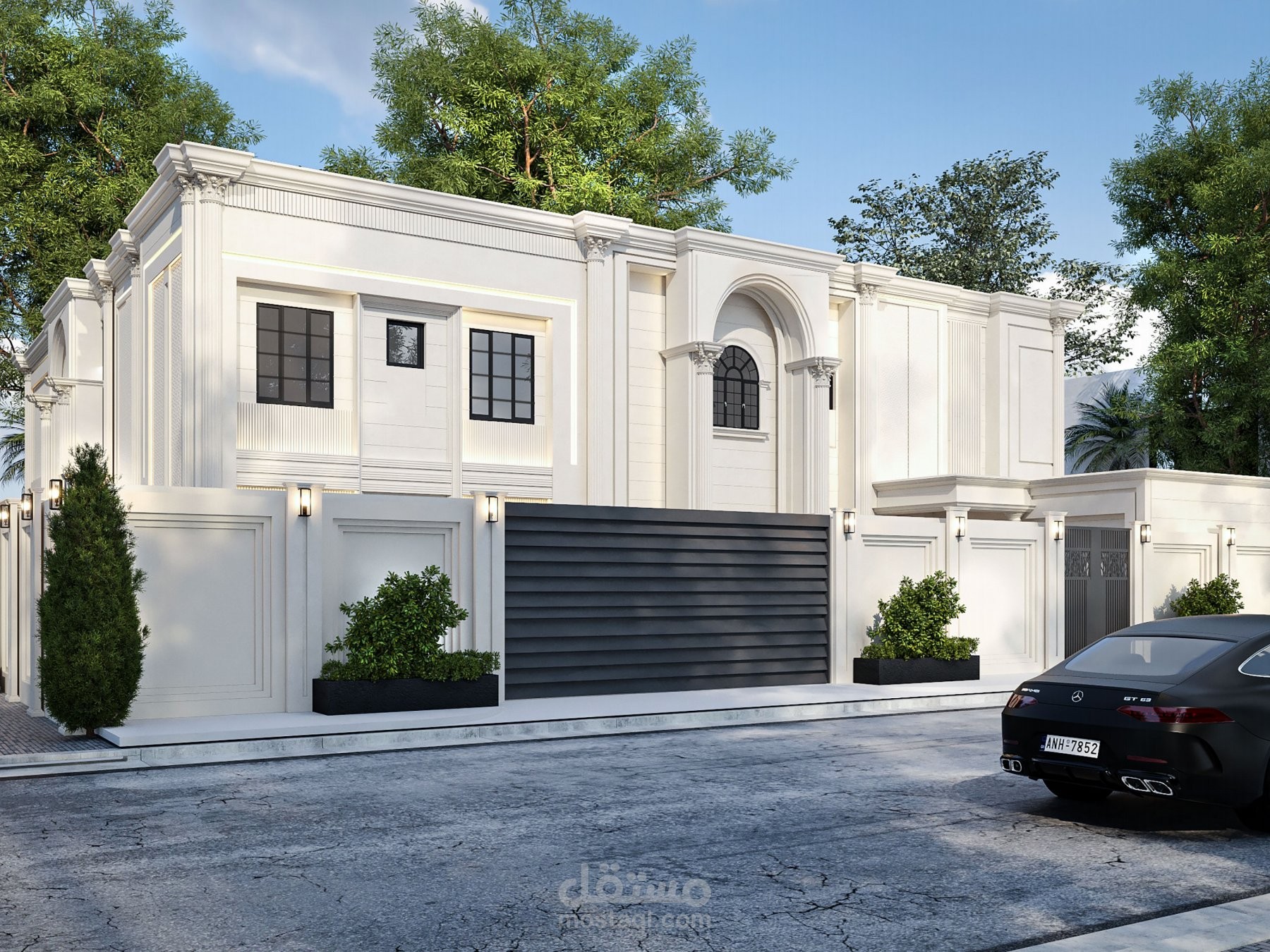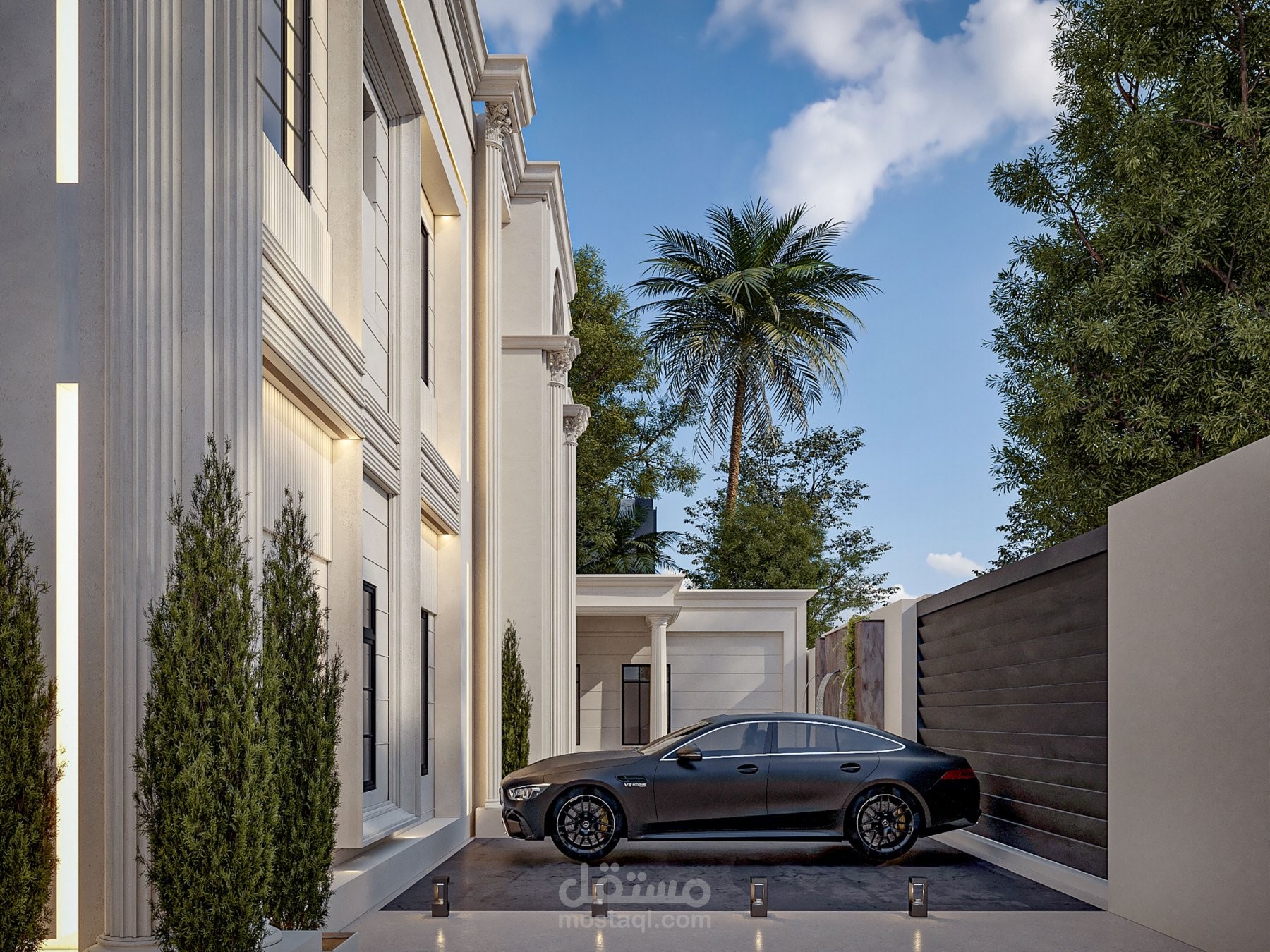 تصميم فيلا خارجي مع لاندسكيب لحديقة الفيلا واخراجها وتوظيف المساحات واستغلالها بالشكل الانسب