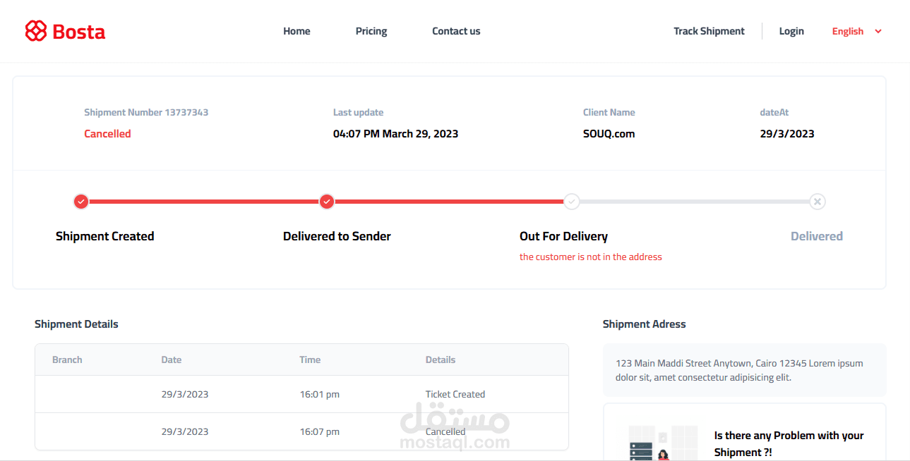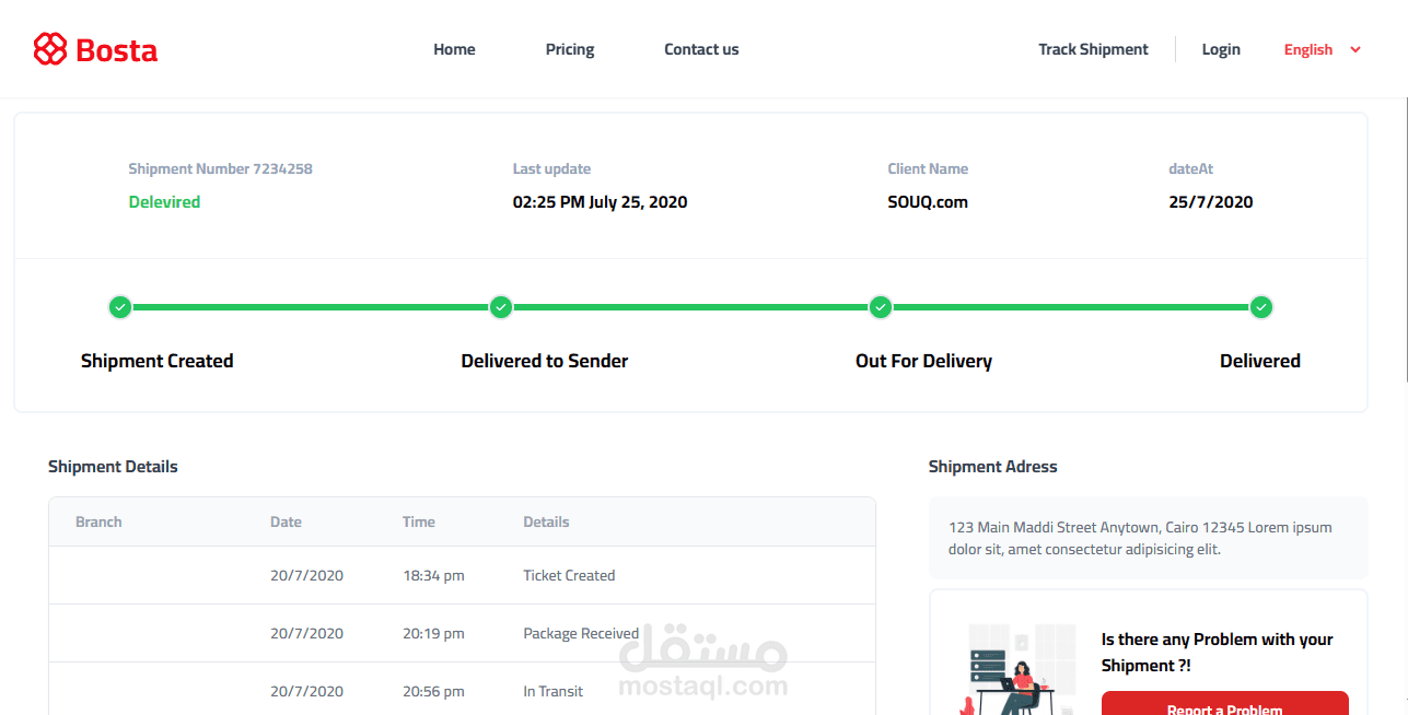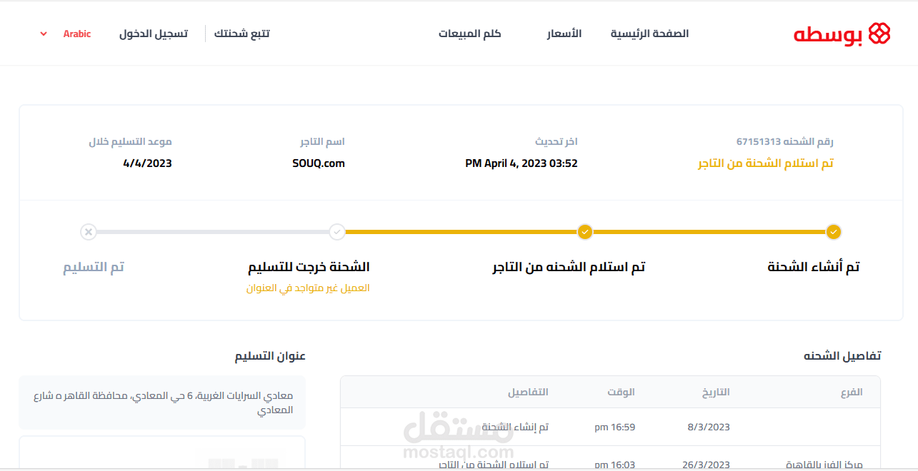 موقع لتتبع الشحنات المختلفة لتتبع شحنات التجارة الالكترونية متاح به اللغة العربية و الانجليزية.