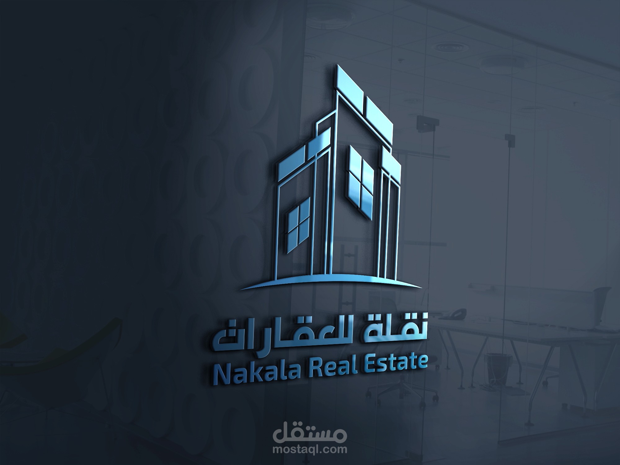 شعار لصالح شركة نقلة للعقارات مستخدم فيه كلمة نقلة على شكل الأبراج على برنامج الاليستريور