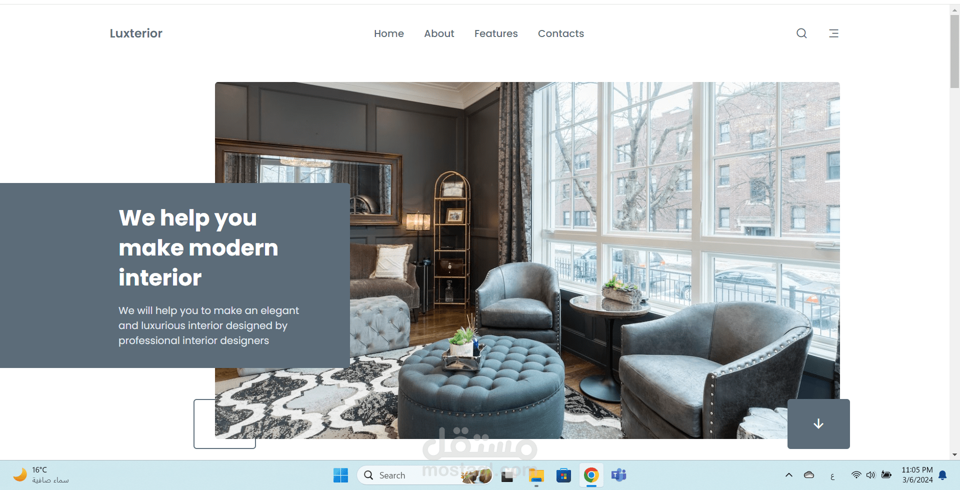 The Luxterior project is a web page design project for the Luxterior company, which works in the field of interior design and decoration. The goal of the project is to create a web page that displays the company's services and products in an attractive and visual manner.
