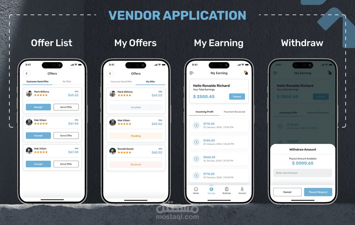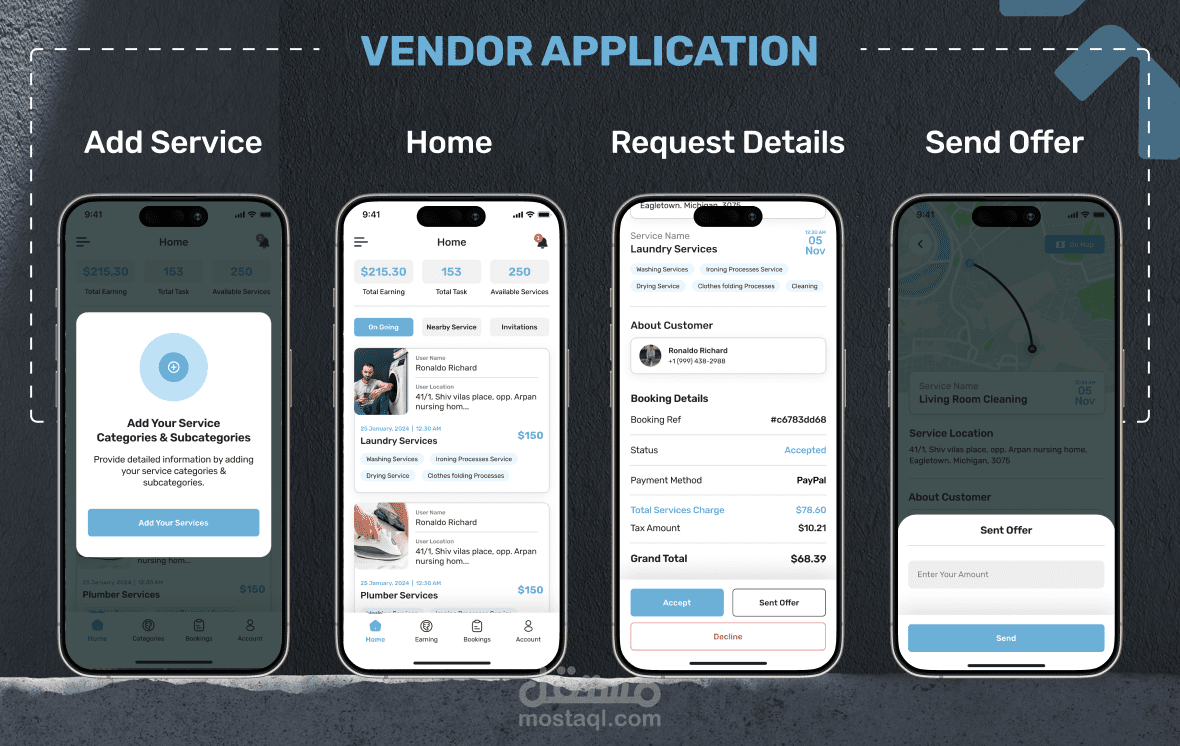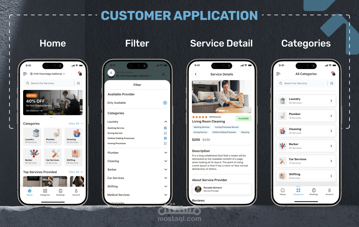 تطبيق مقدم الخدمة: تطبيق مخصص يتيح لمحترفي الخدمة إدارة الجداول الزمنية وقبول الحجوزات والتواصل مع العملاء في الوقت الفعلي.