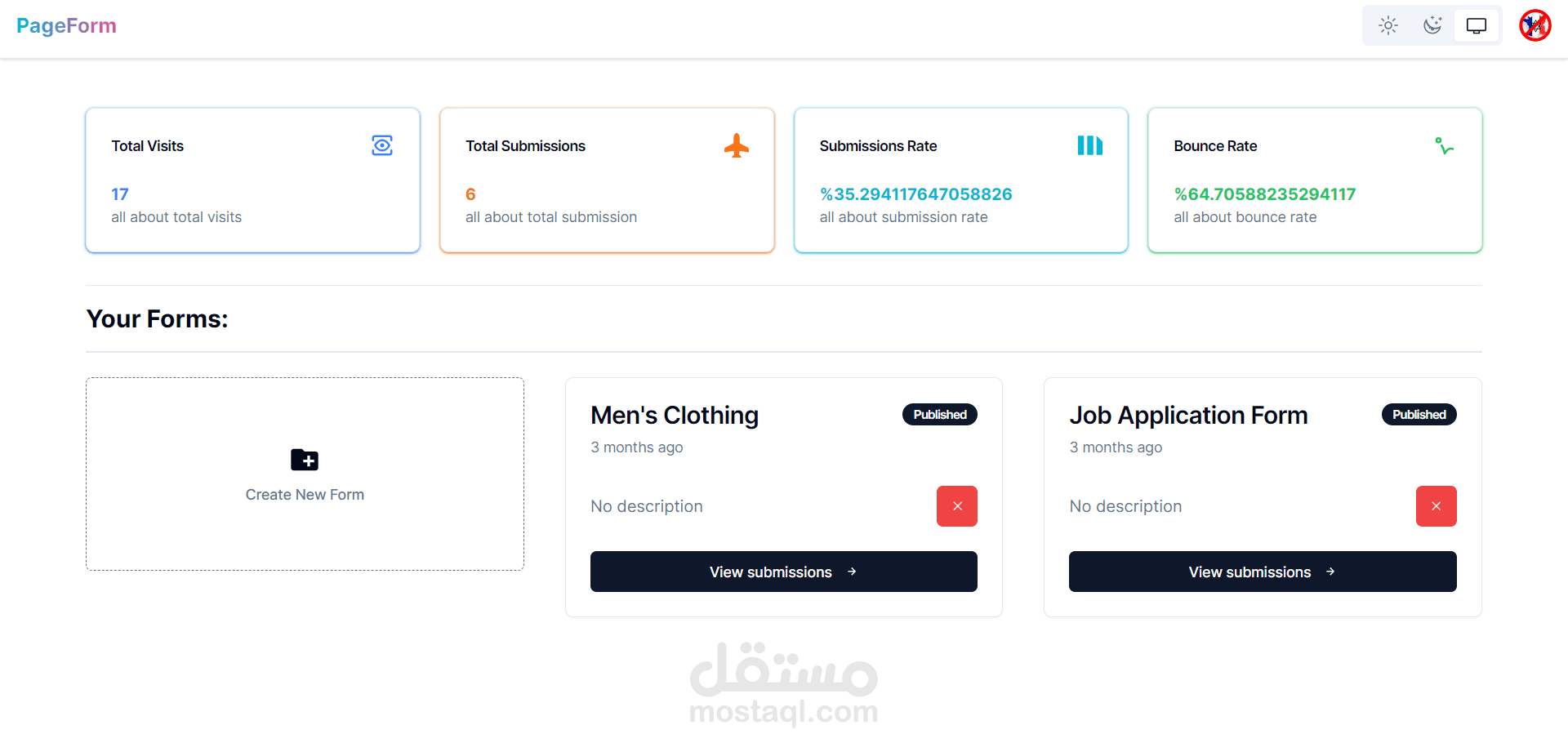 - إحصائيات النموذج: الزيارات والعروض