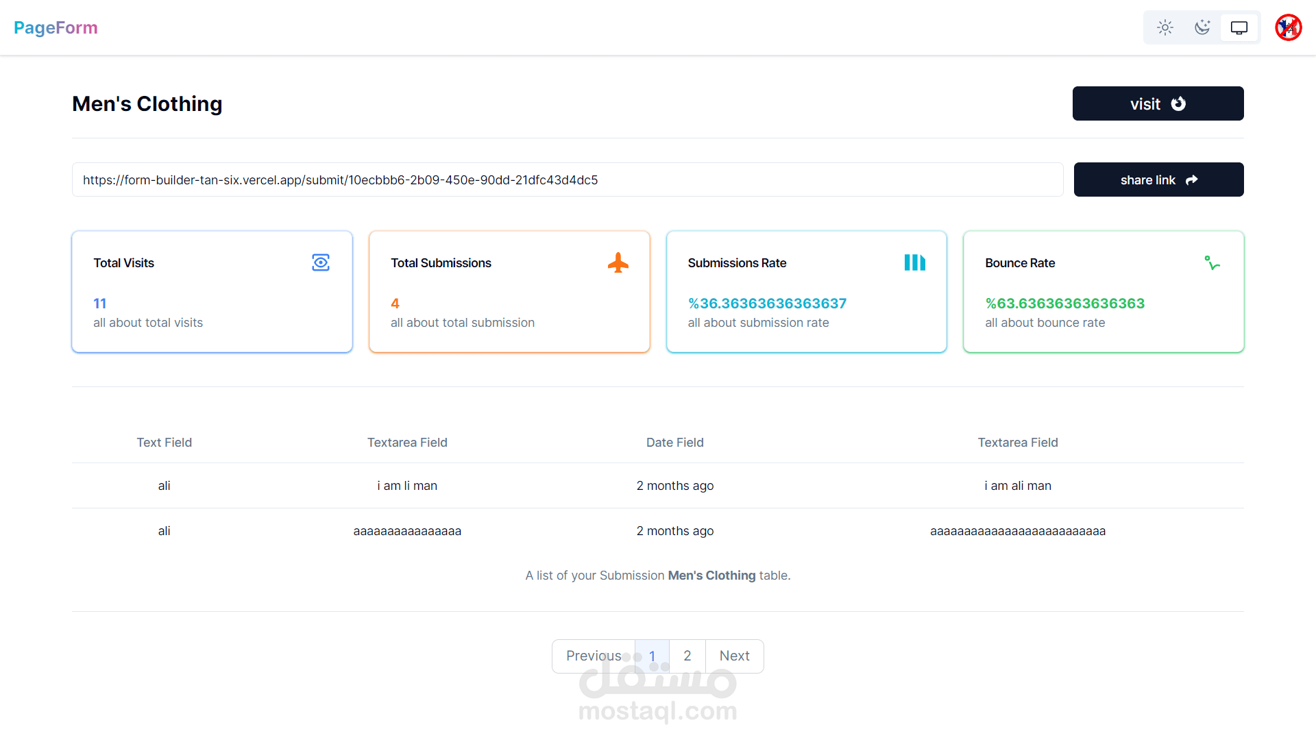 - مشاركة رابط النموذج