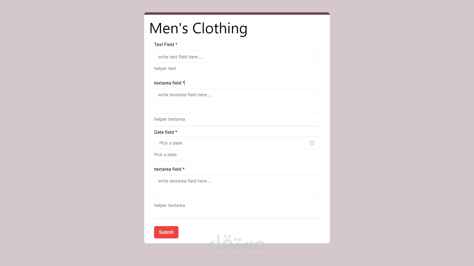 - حقول النموذج: النص، الرقم، التحديد، التاريخ، خانة الاختيار، منطقة النص
