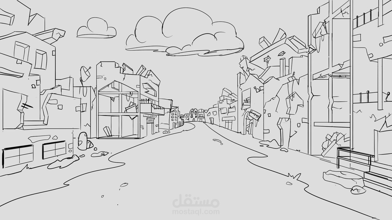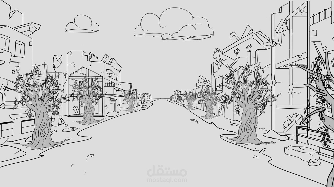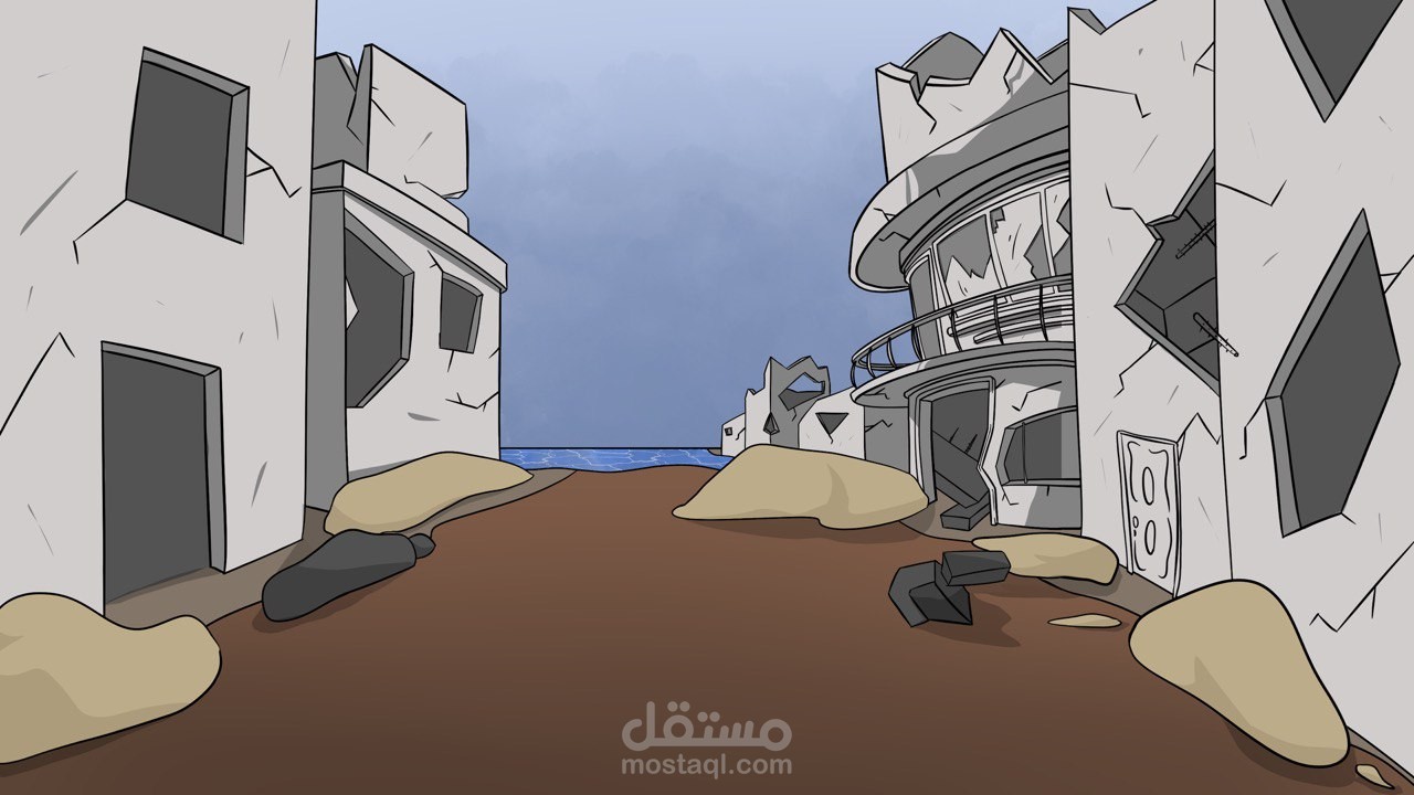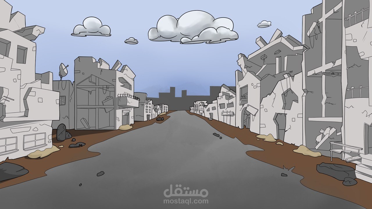 رسم رقمى لخلفيات يتم استخدامها فى فيديو قصير يتكلم عن معاناة الفلسطينيين فى غزة