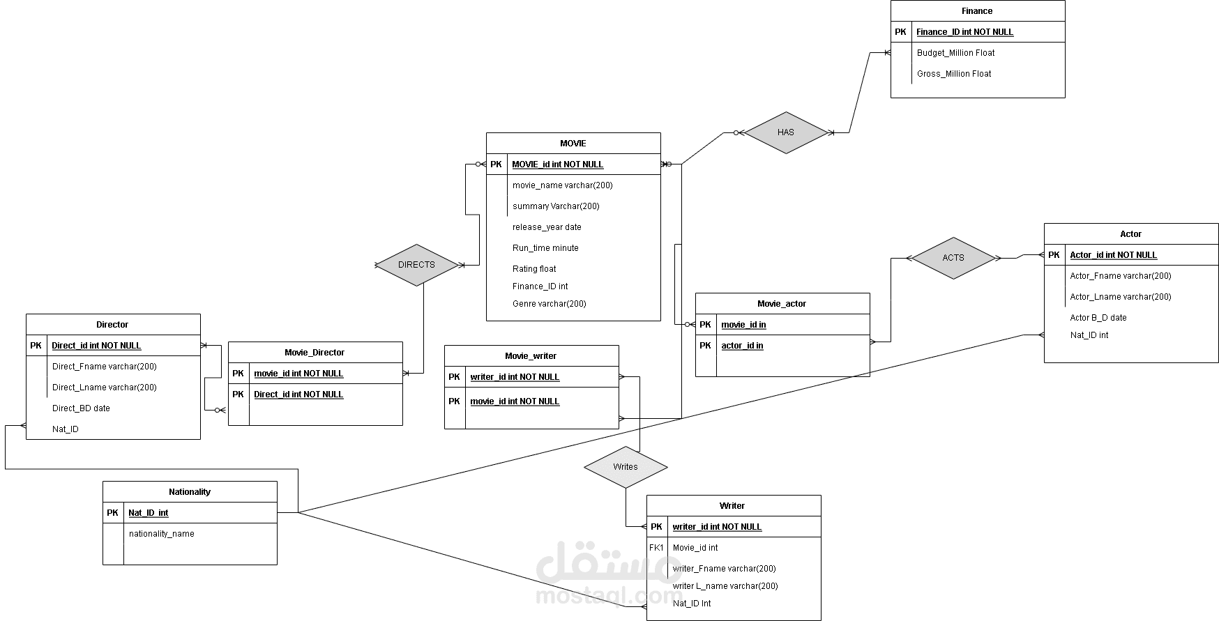 Project goal This repository contains a data analysis project based on the IMDb movies dataset sourced from Kaggle. The dataset was cleaned, enhanced with additional real details about movies, actors, writers, directors, and their nationalities. After preprocessing, an Entity-Relationship Diagram (ERD) was created, followed by mapping, normalization, and importing the cleaned data into SQL Server. Subsequently, SQL queries were developed to derive insights from the dataset.