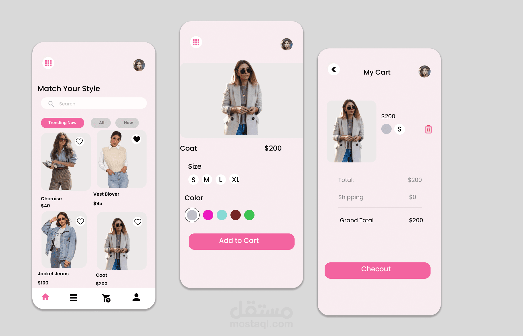تطبيق متجر الكترونى للملابس يعرض الملابس واسعارها والالوان المتاحة لها ويعرض لك فاتورة ما اشتريته