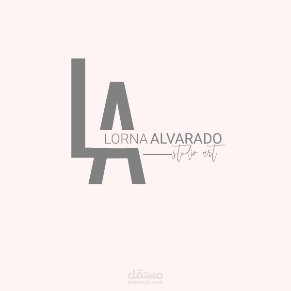 اللوجو يتألف من حروف "L" و"A" باللون الأبيض على خلفية داكنة. تم تصميم الحروف بشكل هندسي وبسيط. أسفل الحروف "LA"، هناك نص باللون الأبيض يقول "LORNA ALVARADO". التصميم العام أنيق ومحترف، مع تباين عالي بين النص والخلفية للرؤية¹.