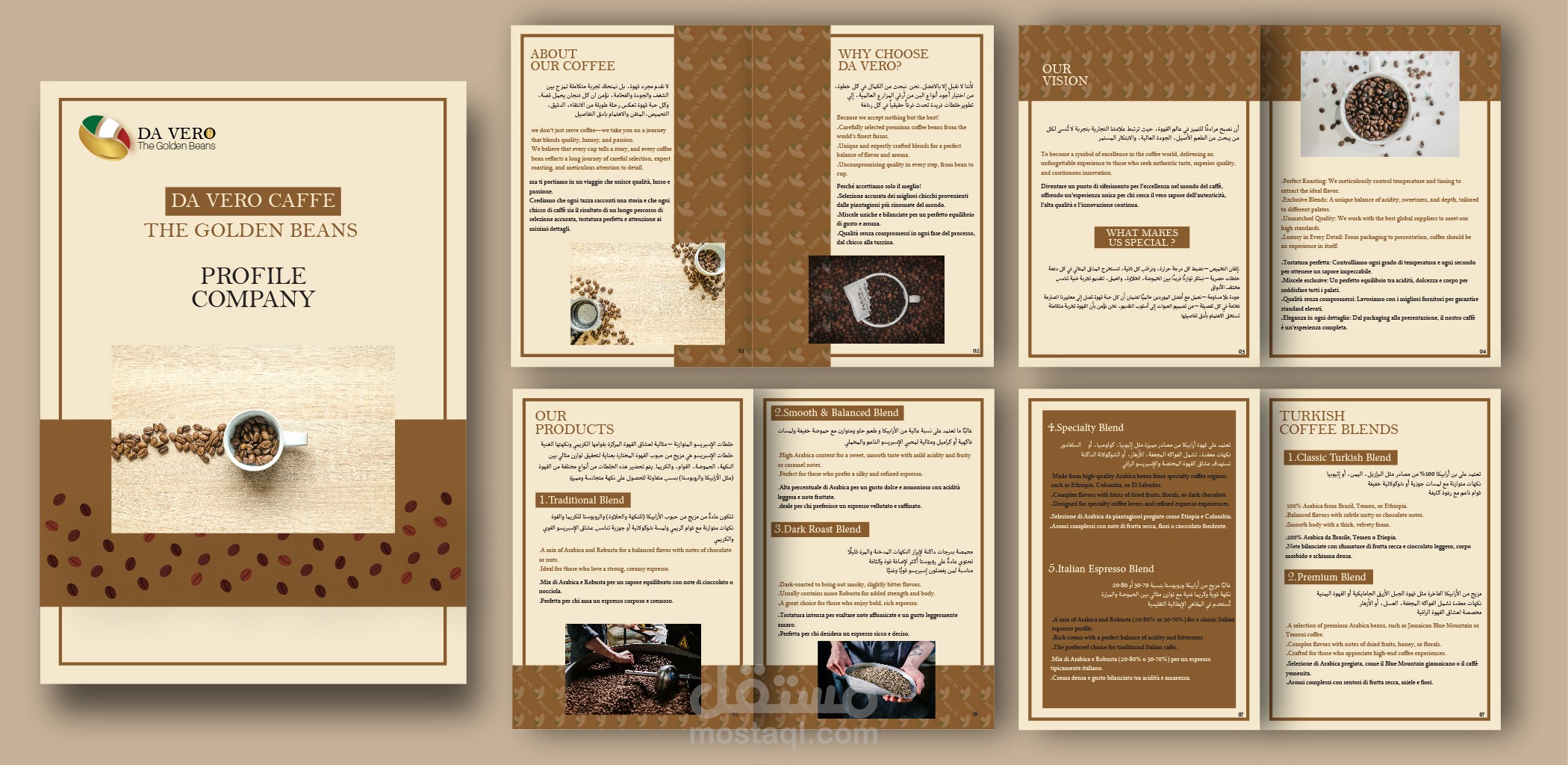تم تصميم شعار وهويه بصرية لمصنع قهوة ايطالي DA VERO