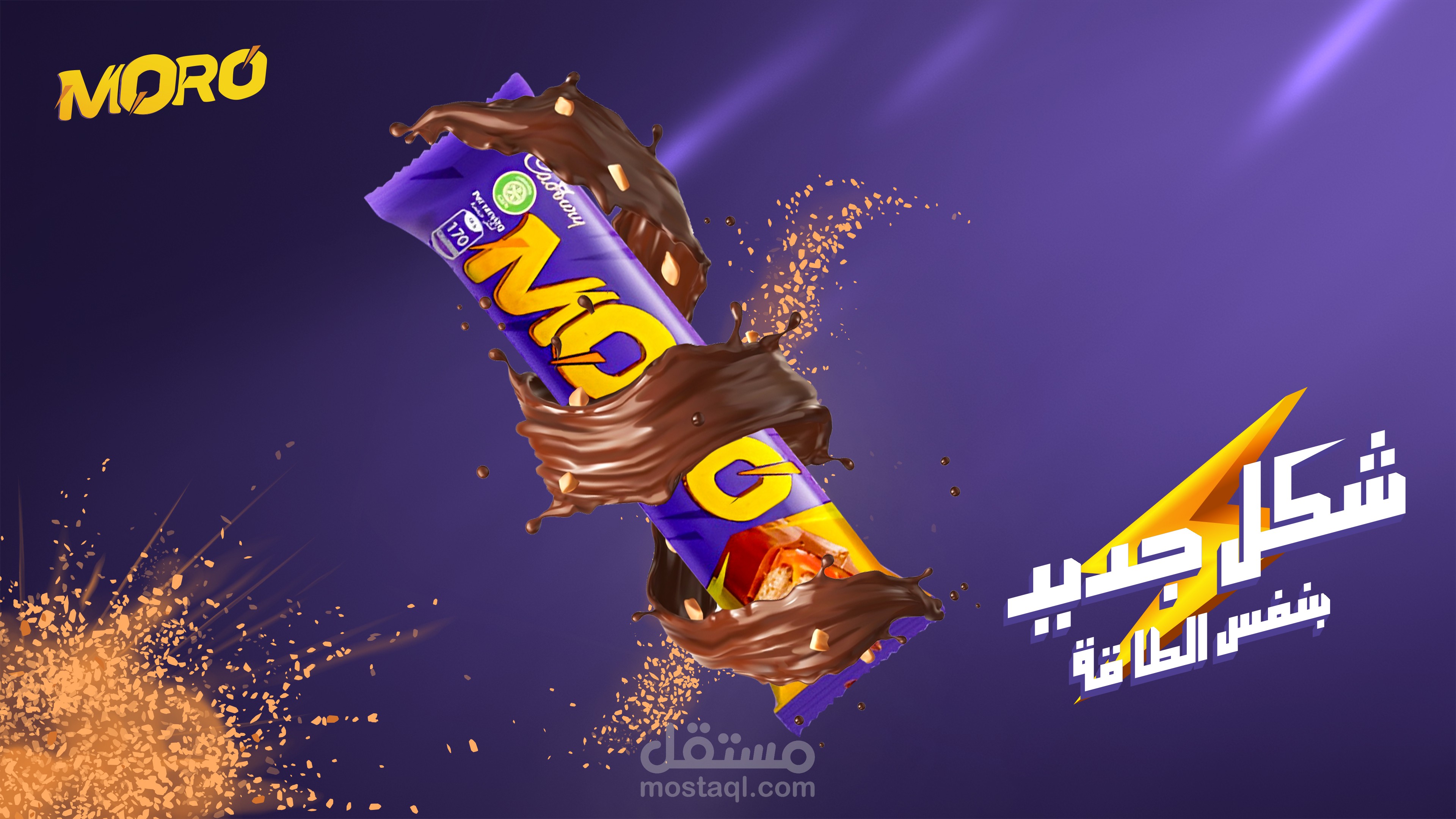 Porject Overview : Moro is a Egyptian chocolate brand update there logo and packaging. Thic visual aims to draw customer attention to new packaging under the slogan «شكل جديد بنفس الطاقة»