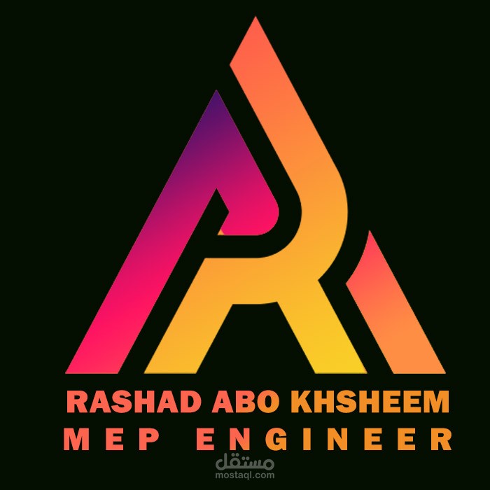 تصميم لوجو إحترافي لأول حرفين من إسم المهندس RA متداخل بشكل متناسق ليعبر عن الشركة ومجال تخصصها