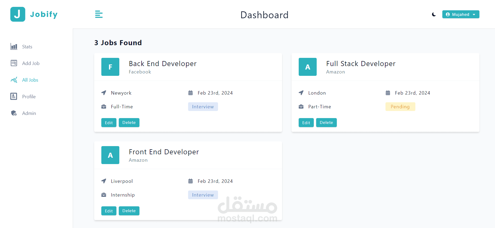 Description: Jobify is a job tracking application built using the MERN (MongoDB, Express, React, Node.js) stack. The app allows users to track the status of their job applications. It is a valuable tool for job seekers looking to streamline their job search process.